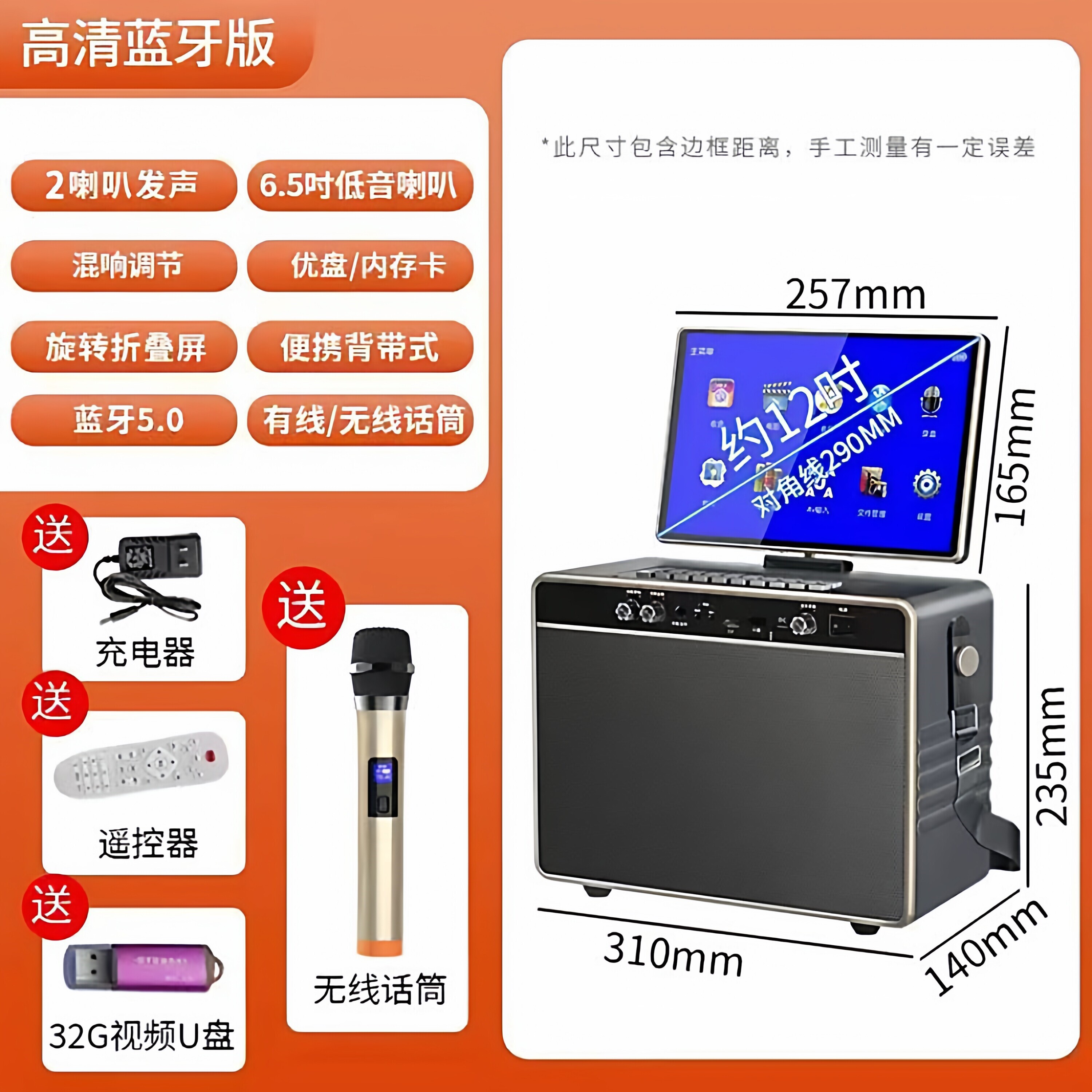 华宝广场舞音响带显示屏户外唱k点歌机歌卡拉ok一体机家庭ktv套装
