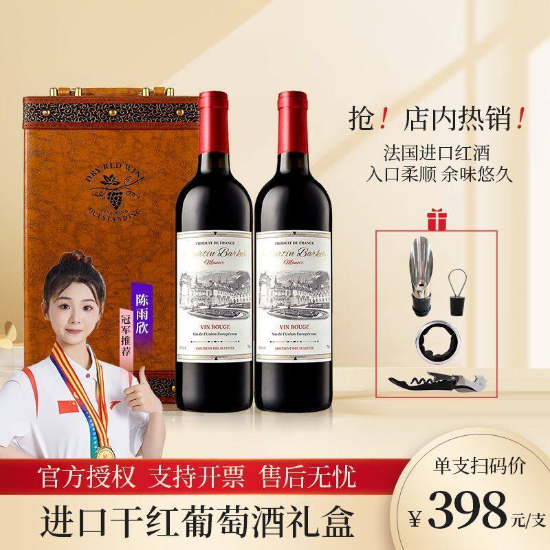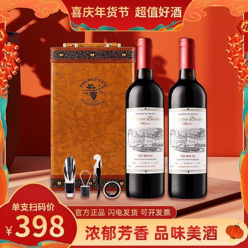 法国进口干红葡萄酒双支礼盒红酒送礼高档13度14度赤霞珠珍藏酒庄