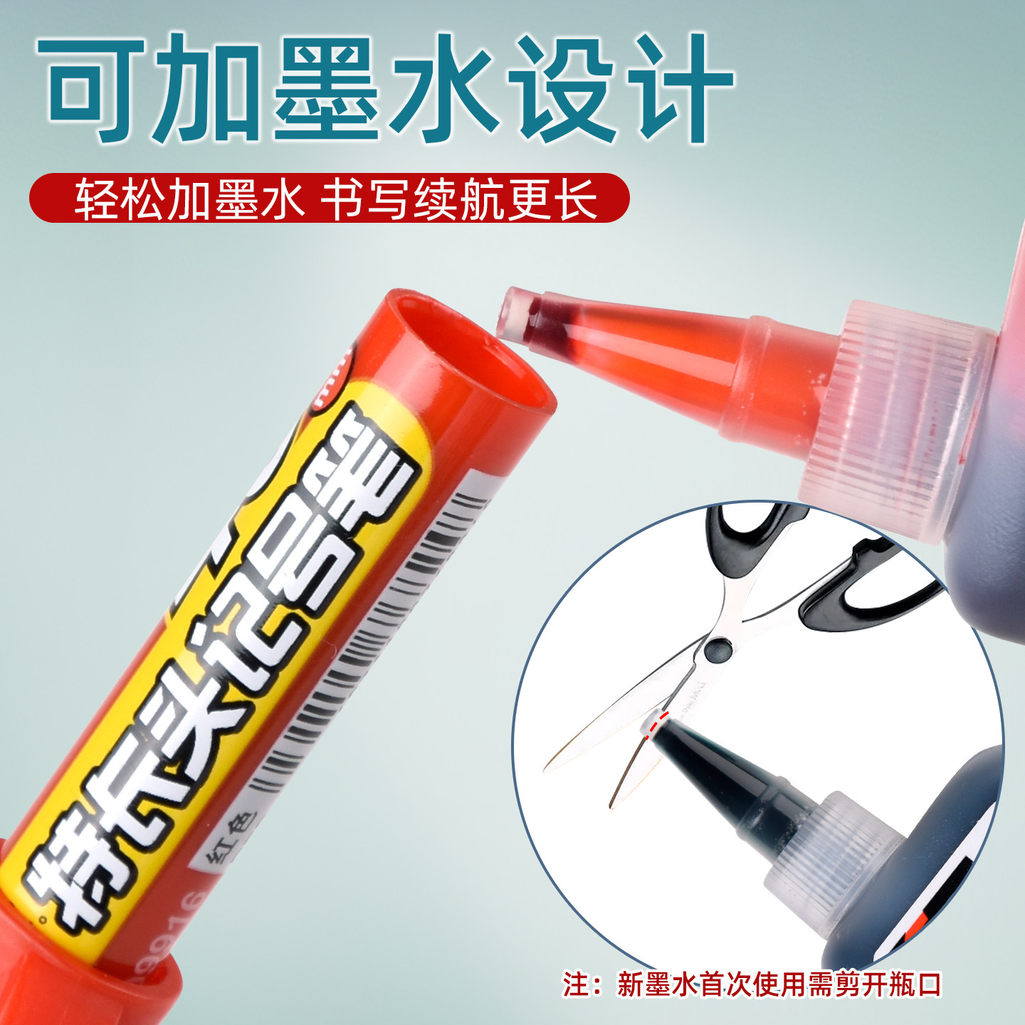 长头记号笔可加墨油性防水防油不掉色加长深孔瓷砖木工标记专用笔