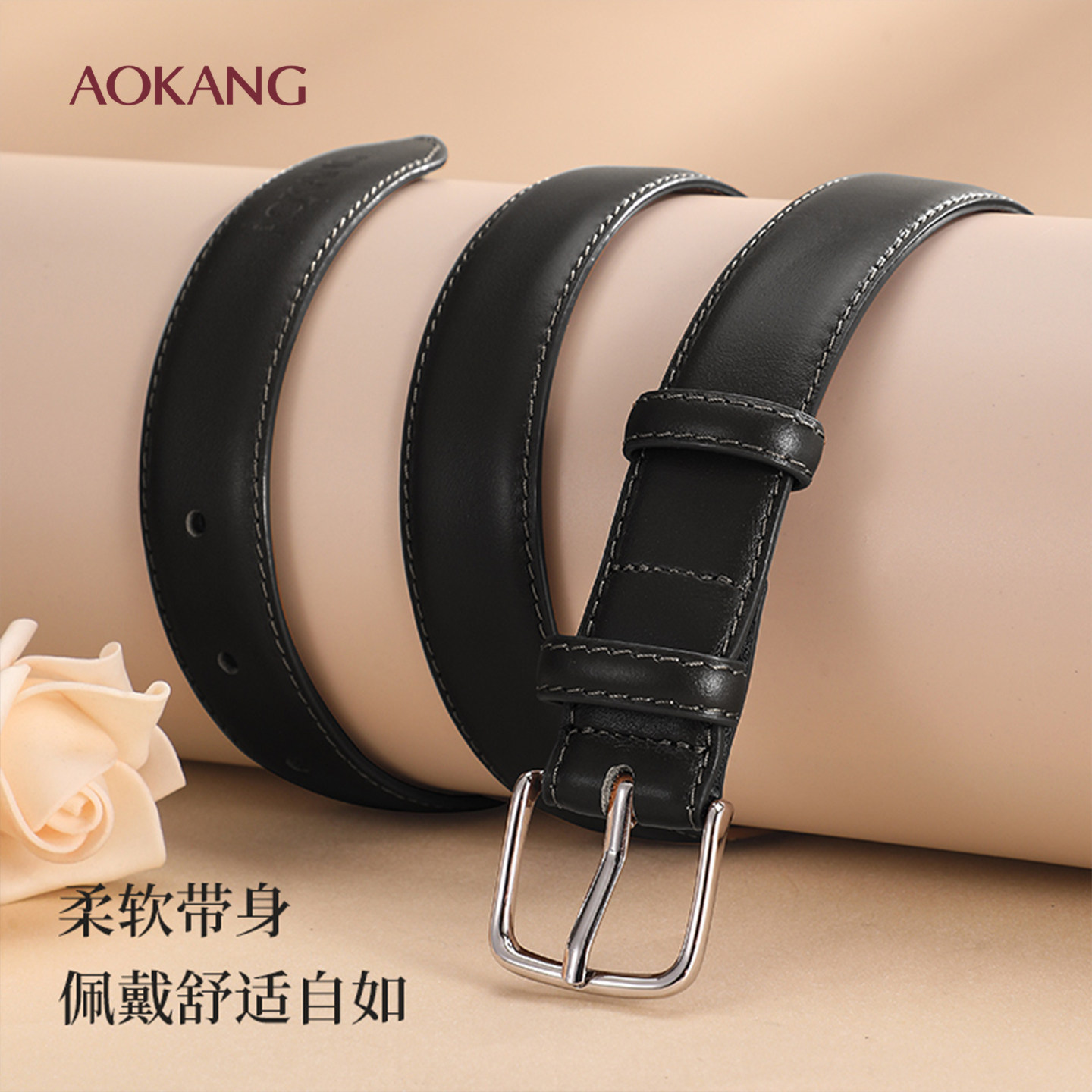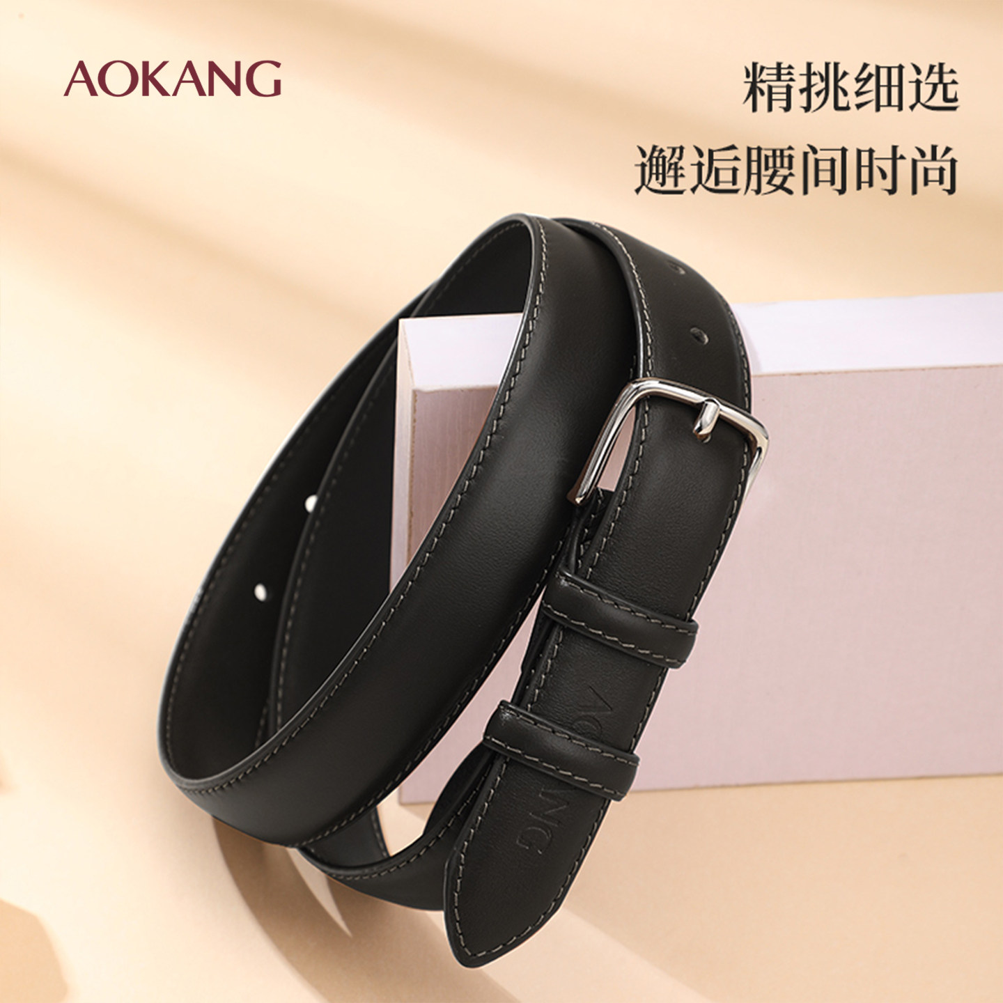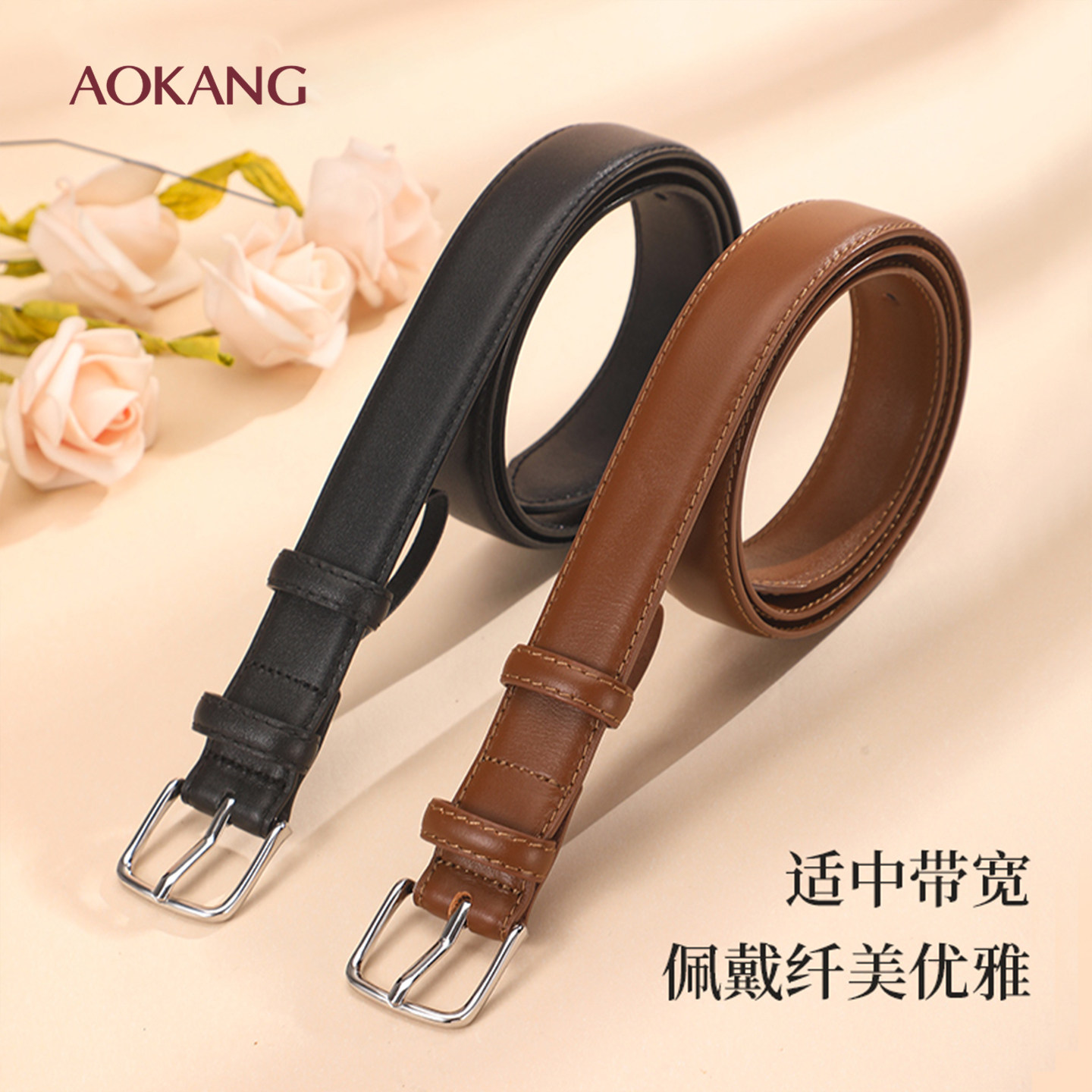 奥康皮带女士简约头层牛皮裤带通勤百搭休闲皮带装饰腰带女带J
