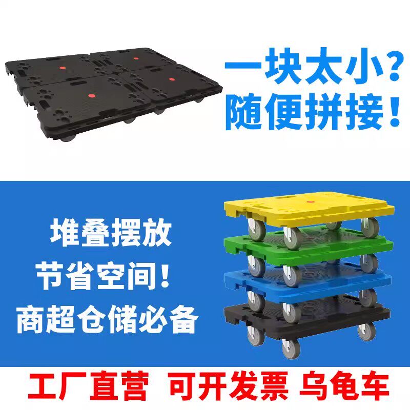 乌龟车移动塑料平板车手推车拉货四轮搬运车折叠工具车万向轮承重