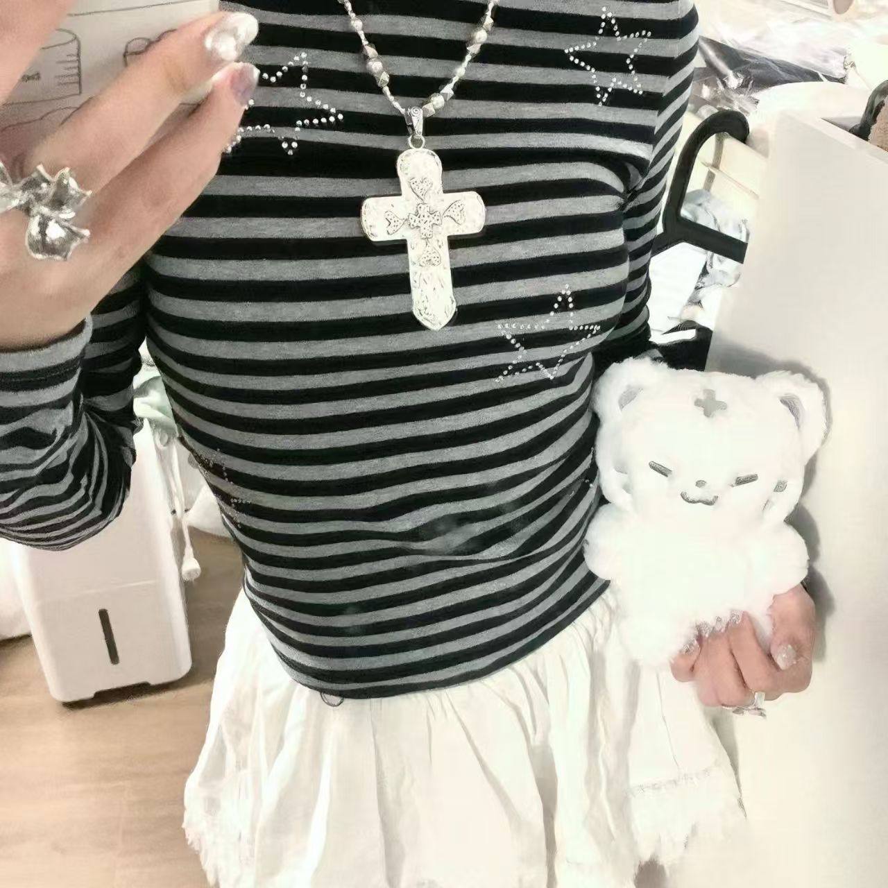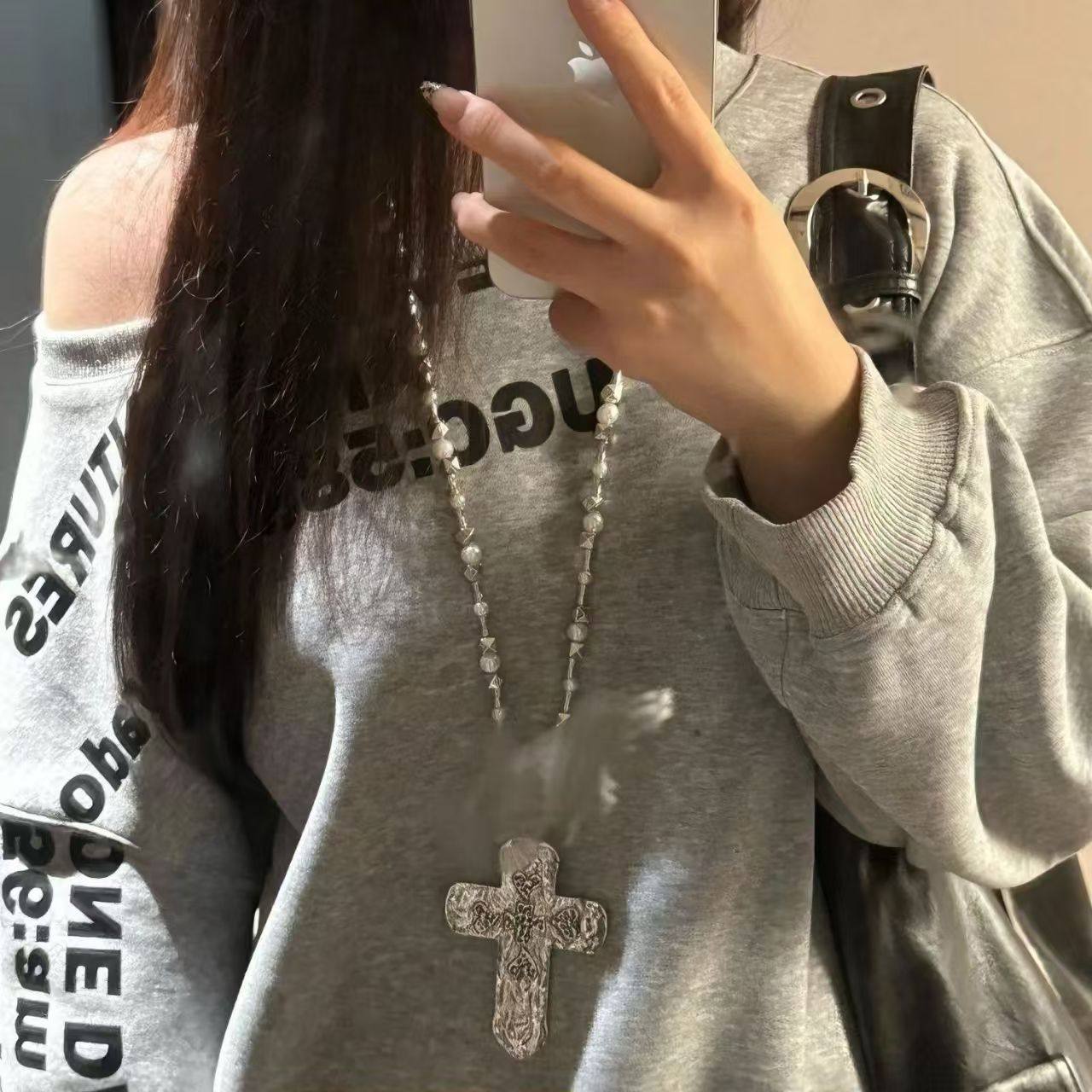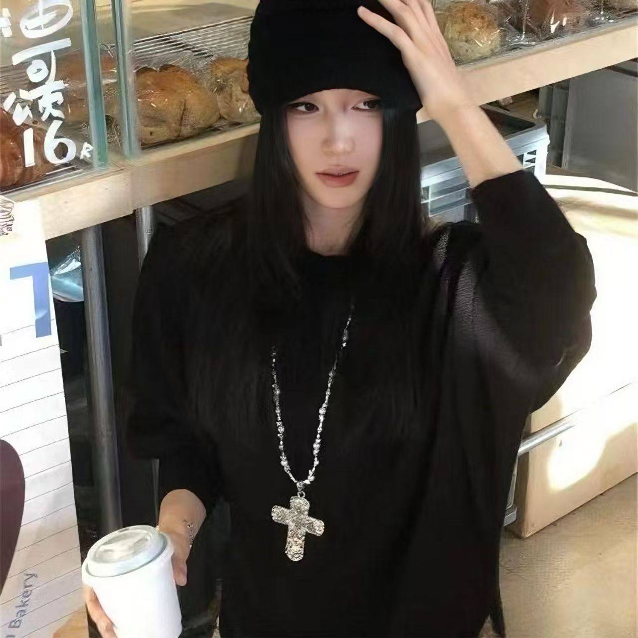 欧美重工串珠十字架吊坠项链女潮流小众Y2K亚文化毛衣链辣妹配饰