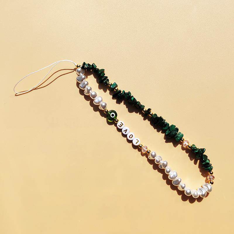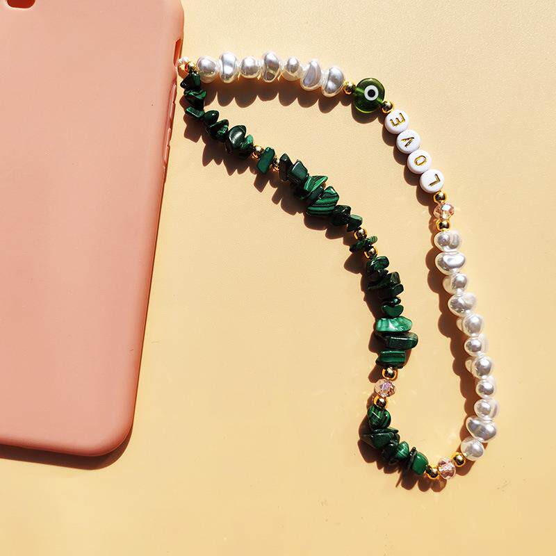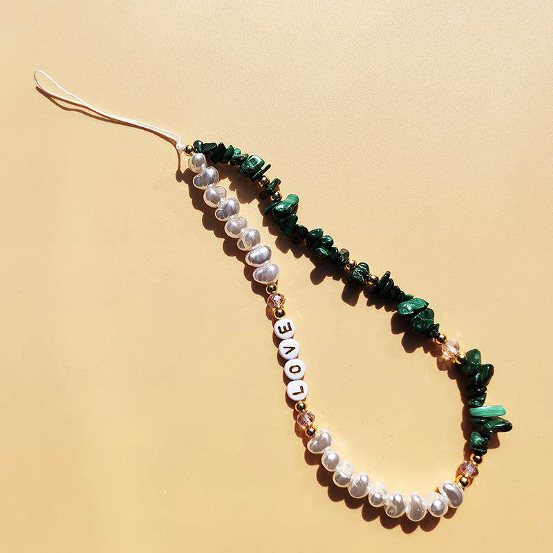 时尚天然孔雀石碎石手机挂绳异形元宝珍珠字母LOVE手机链挂饰