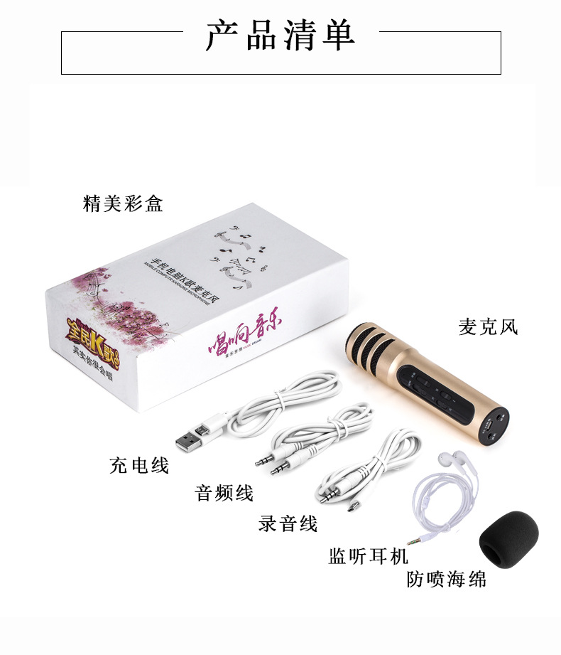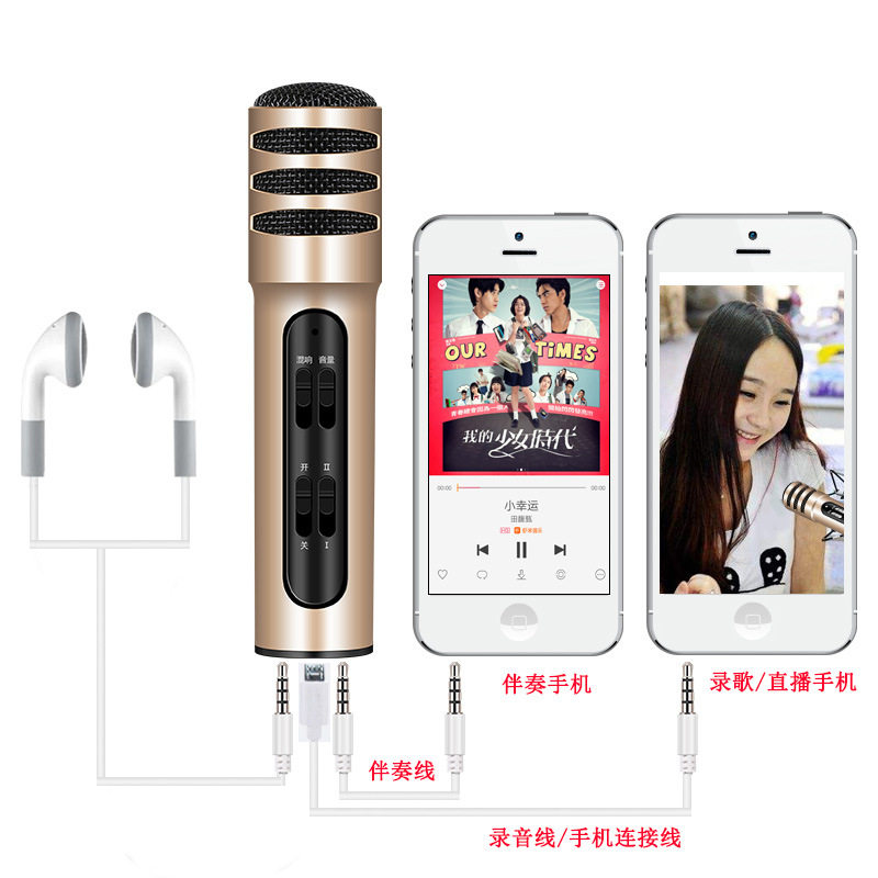 布谷鸟C7全民K歌手机麦克风话筒 主播直播唱歌录音设备内置声卡