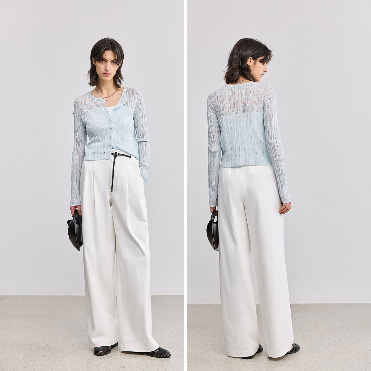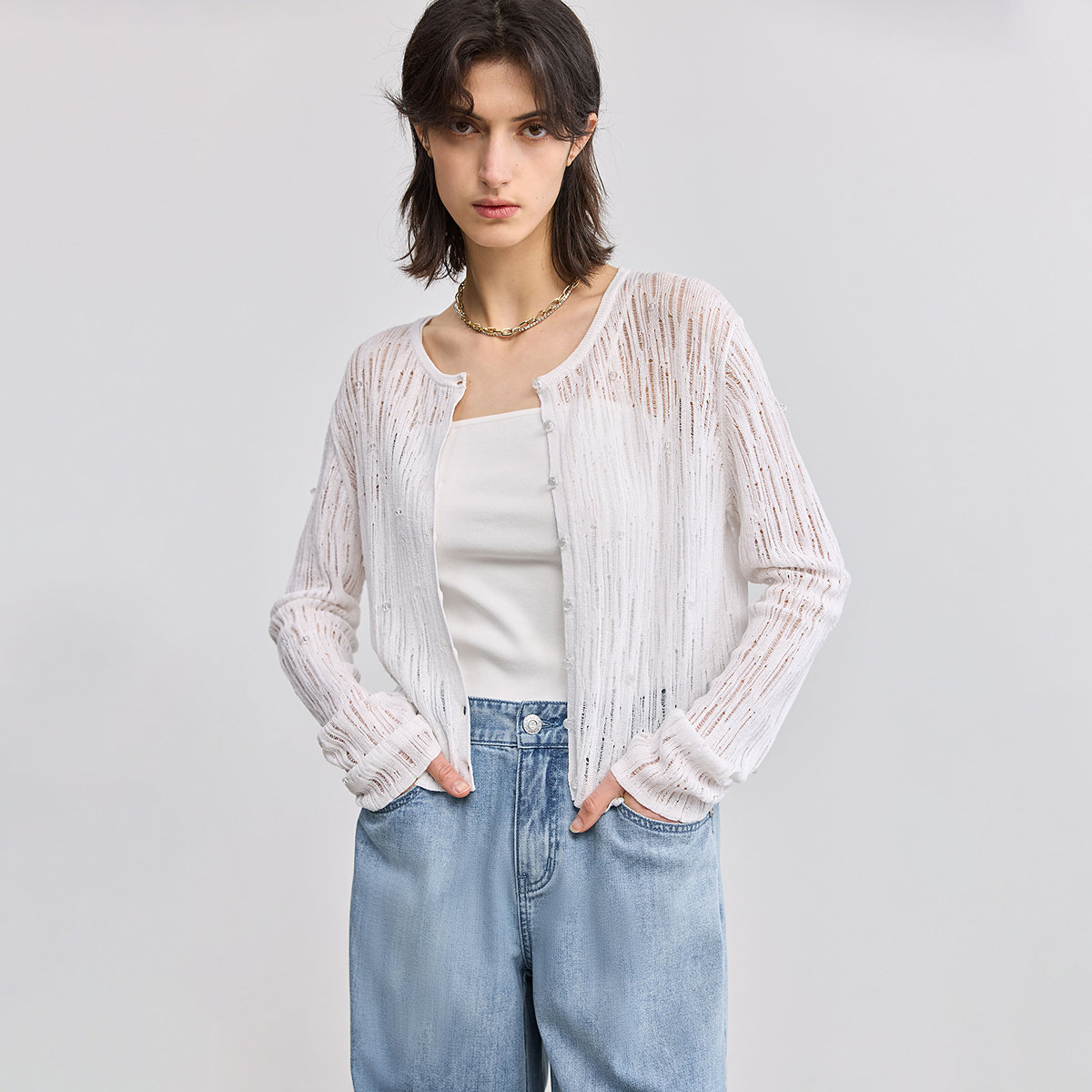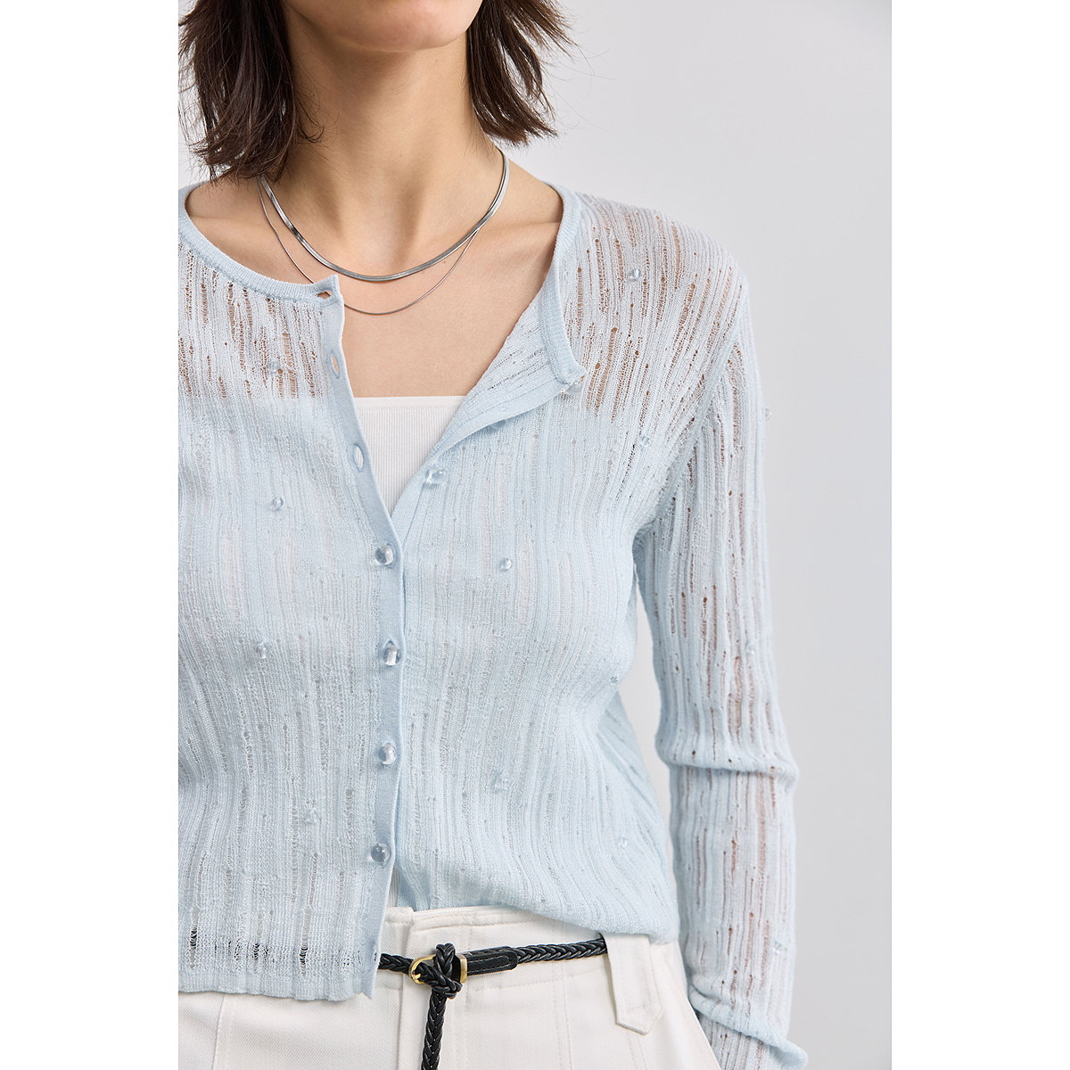 【商场同款】LILY2025新款女装莱赛尔亚麻混纺镂空休闲针织开衫