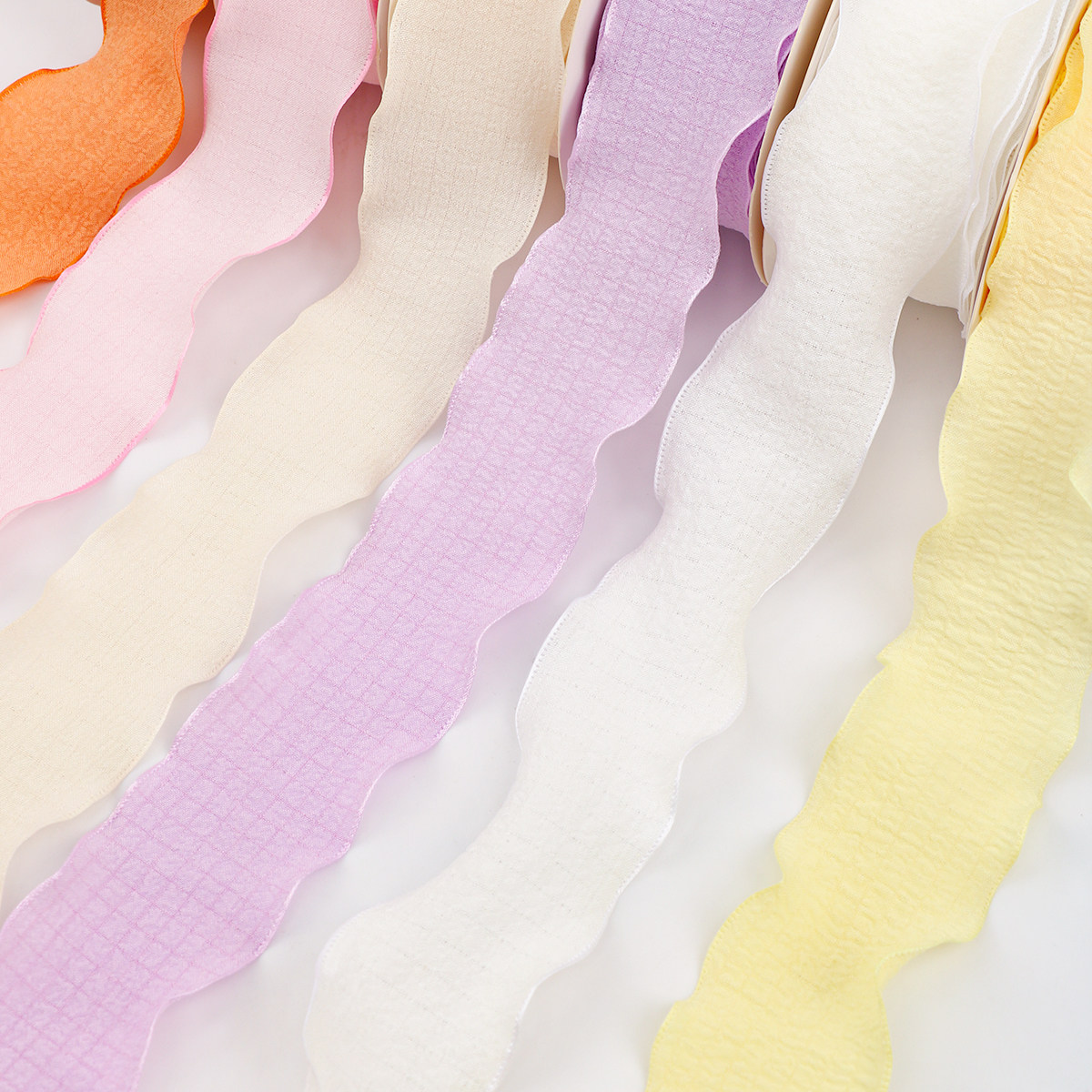 七夕情人节褶皱波浪纱带花束装饰蝴蝶结DIY材料手捧花丝带包装