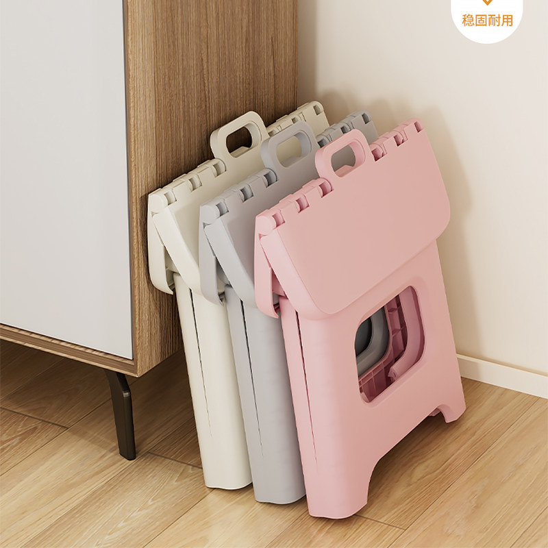 奶油风折叠凳加厚塑料小凳子儿童换鞋凳家用便携茶几凳省空间板凳