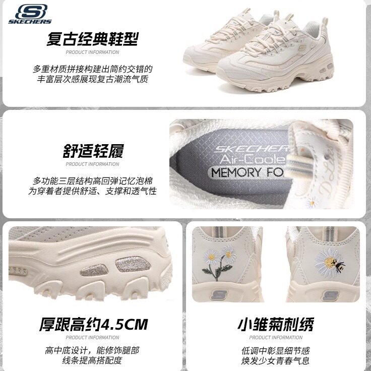 斯凯奇女鞋2026春季新款小雏菊厚底老爹鞋运动鞋轻便休闲鞋熊猫鞋