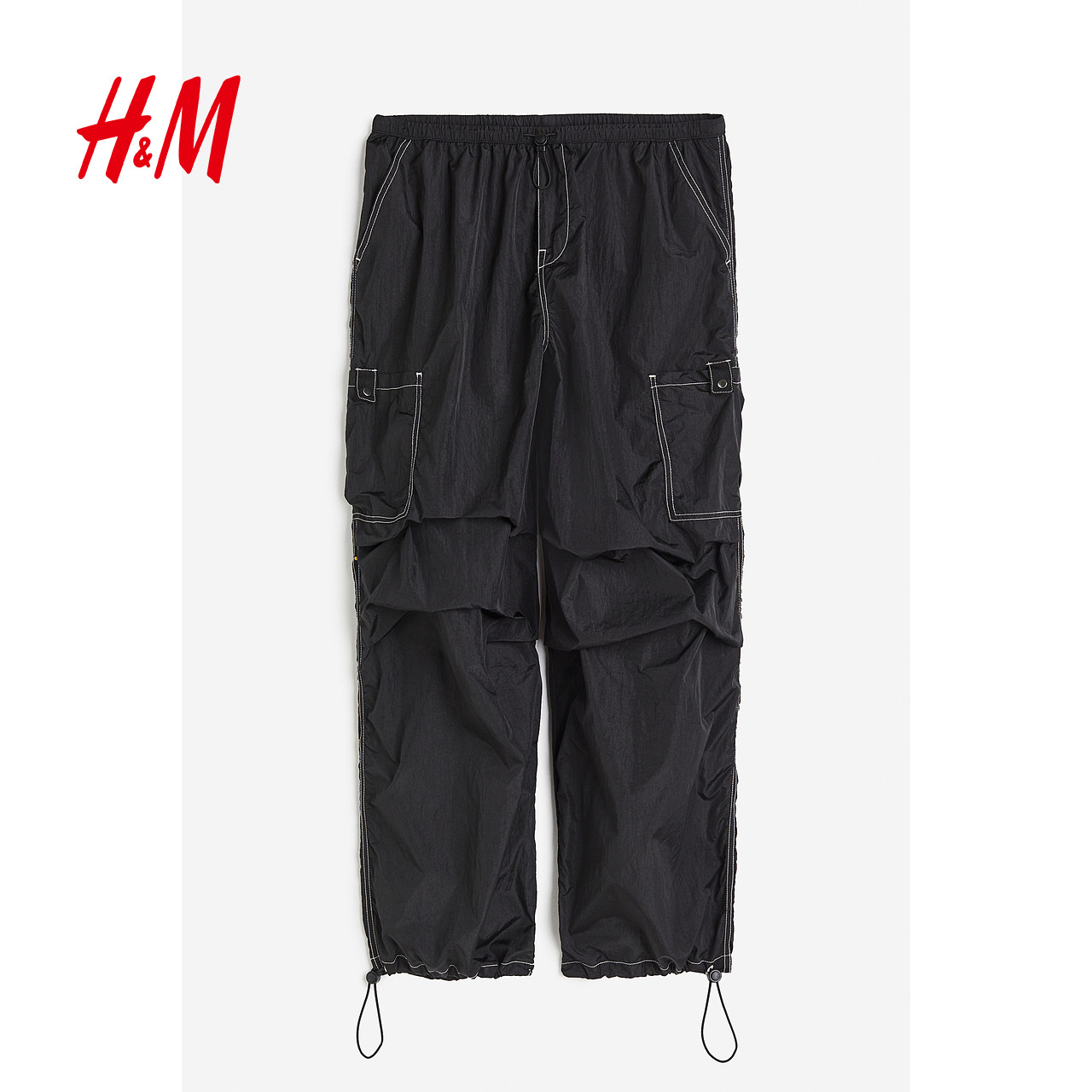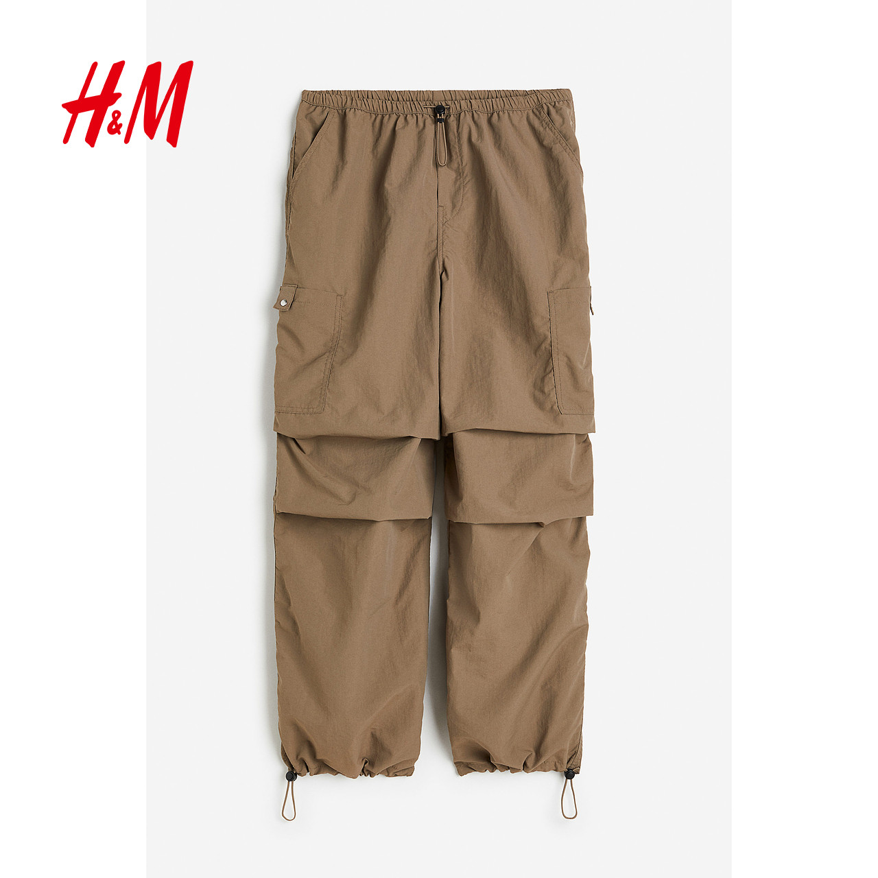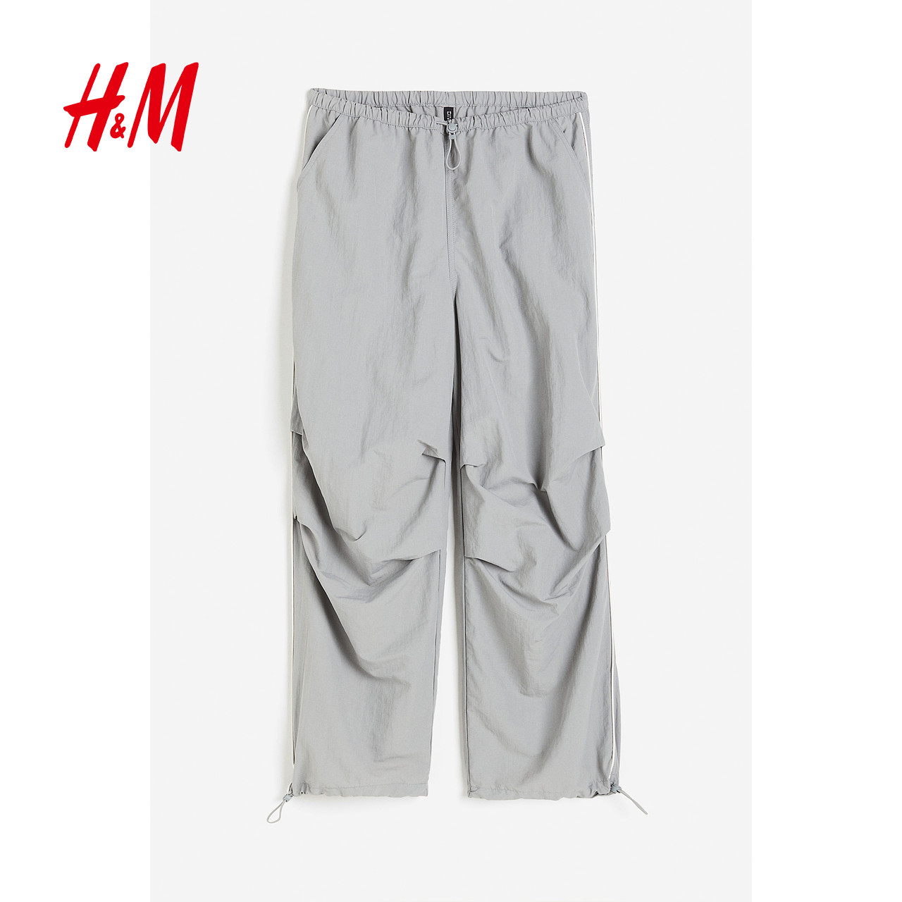 HM女装休闲裤春季复古休闲工装裤中腰阔腿长裤降落伞裤1112962