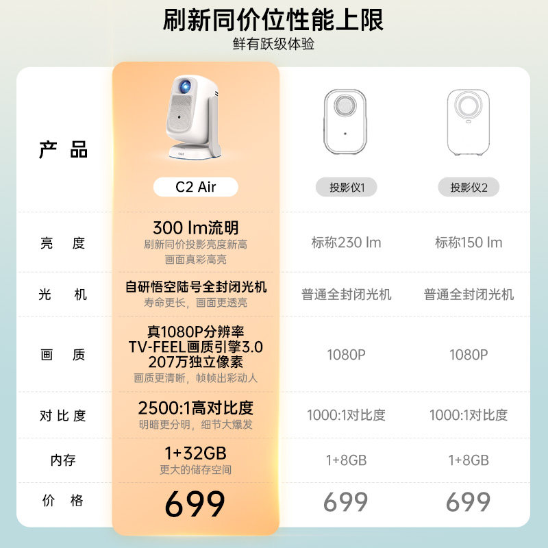 大眼橙C2Air投影仪家用高清1080P小型便携高亮投影机c3air移动家庭影院卧室房间手机投屏露营投影 政府补贴
