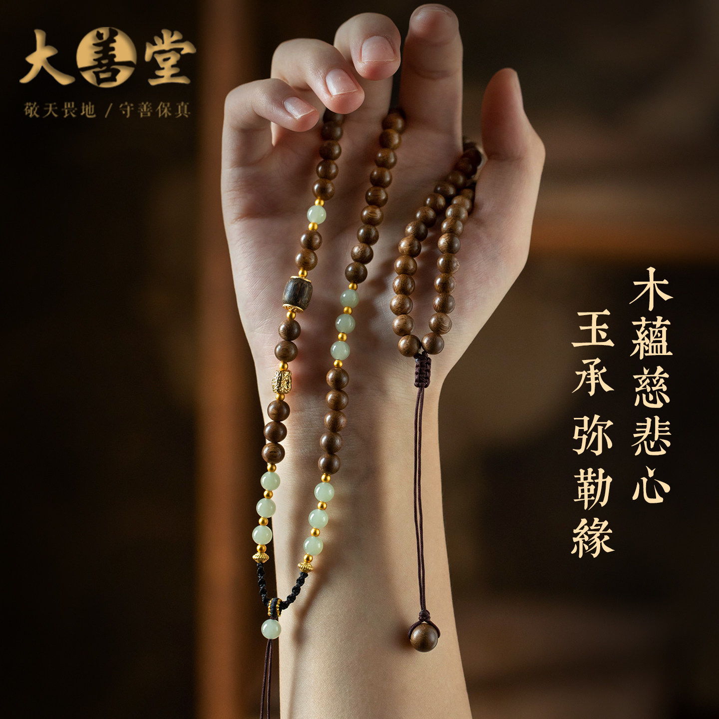【店长设计】沉香木全珠项链毛衣链天然和田玉佛公手工吊坠绳男女