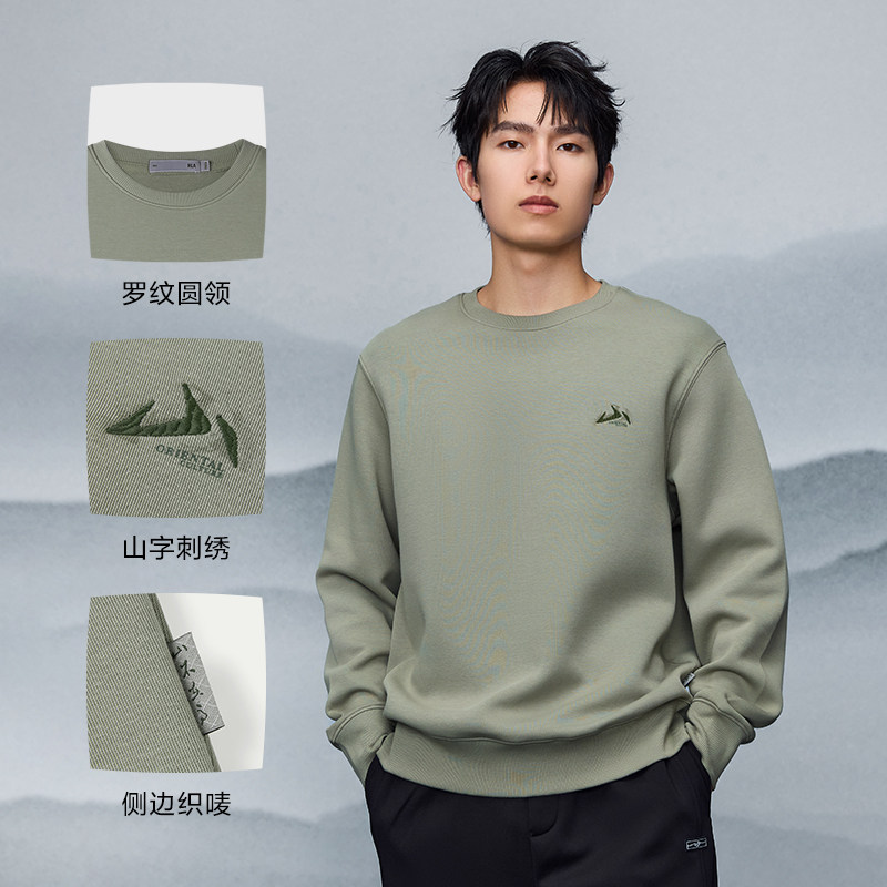 鸭鸭绵羊毛奥粒绒圆领卫衣2025年秋季新款男士简约百搭套头上衣Y