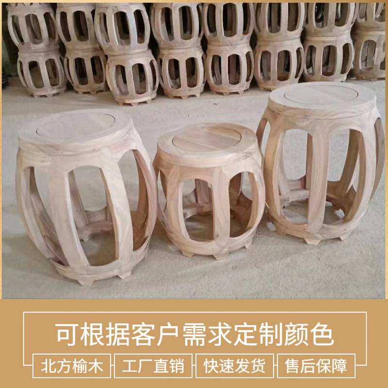 鼓凳老榆木实木鼓墩新中式明清仿古琴凳古筝凳坐墩矮凳餐桌圆凳子