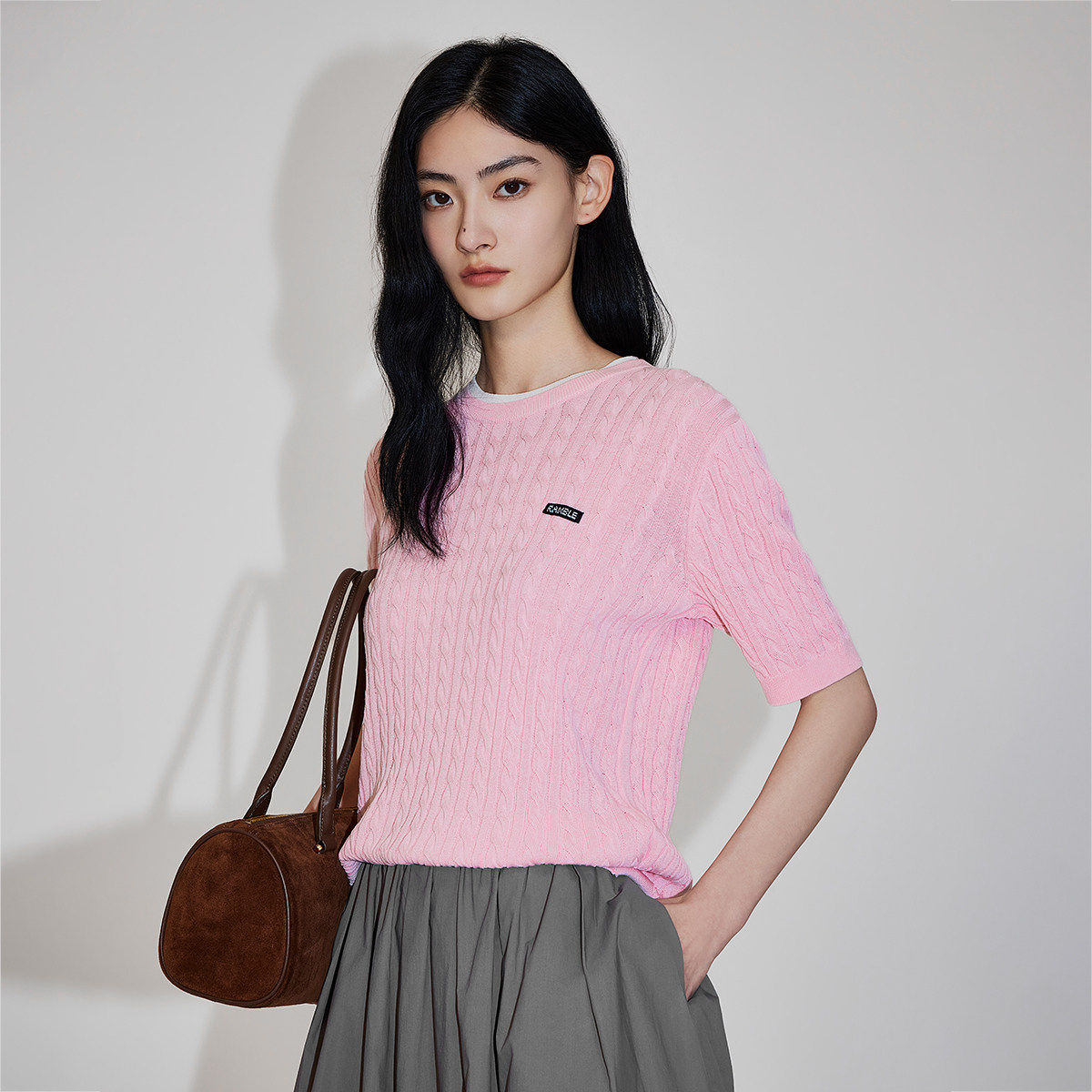 【新品】OCHIRLY欧时力 莱赛尔亚麻扭花短袖针织衫女2026春夏