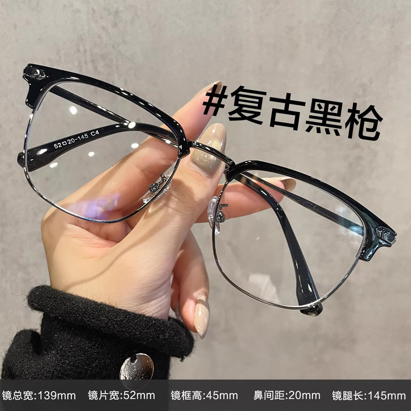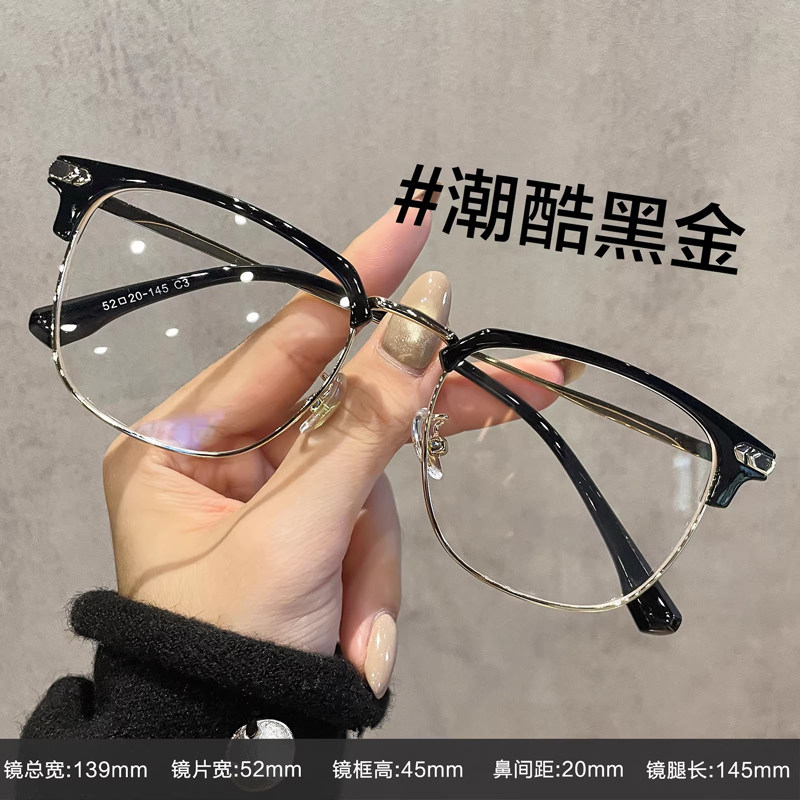 超轻痞帅眉线半框眼镜近视男款黑色可配度数斯文理工男眼睛框架女