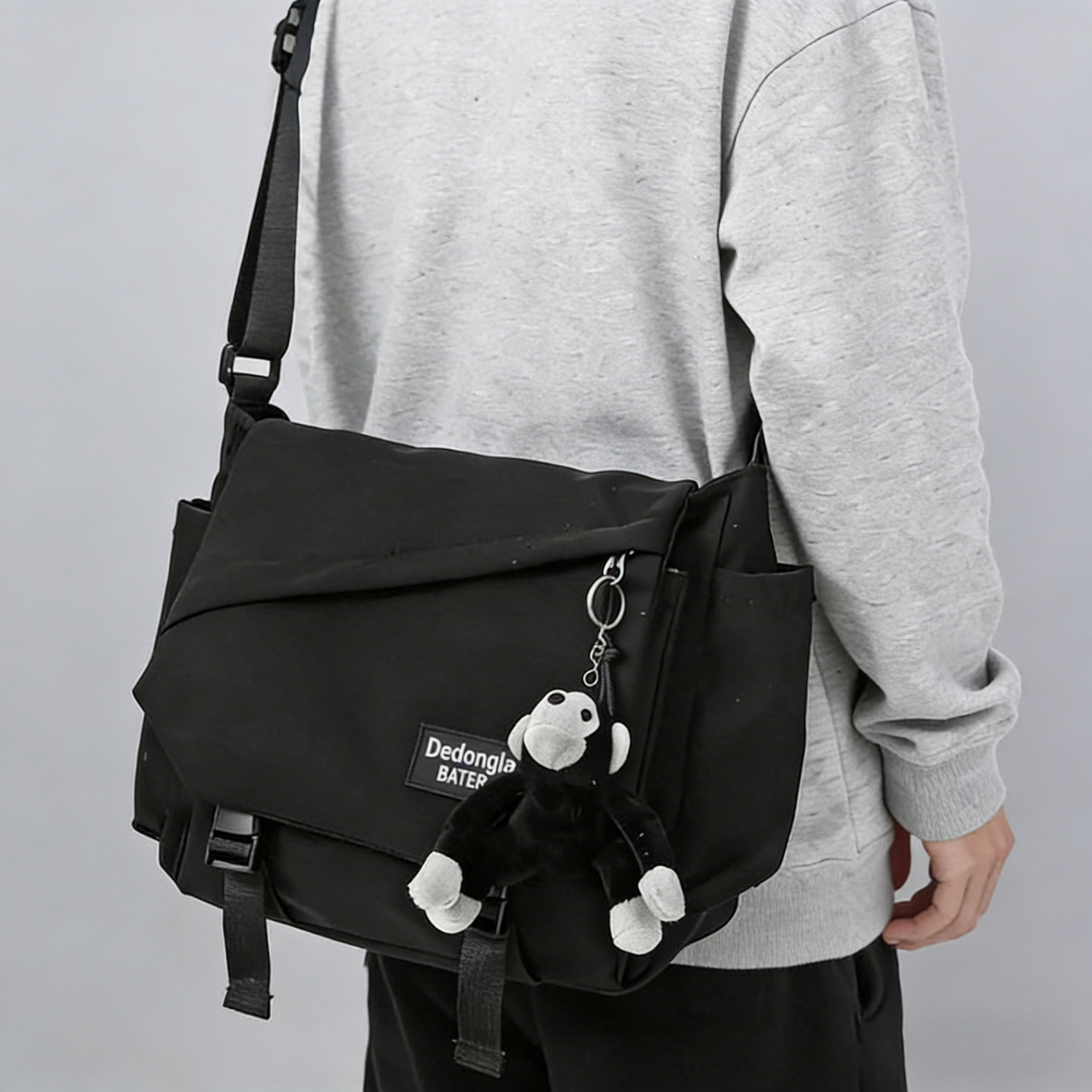 男士斜挎包潮牌ins工装风日系休闲男包大容量单肩包个性邮差包潮