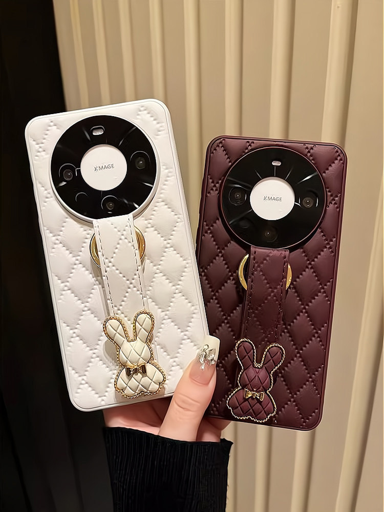适用华为mate60pro新款手机壳菱格小香风mate70兔子腕带mt50pro高级感小众女款40ins风30e秋冬高档pro+保护套