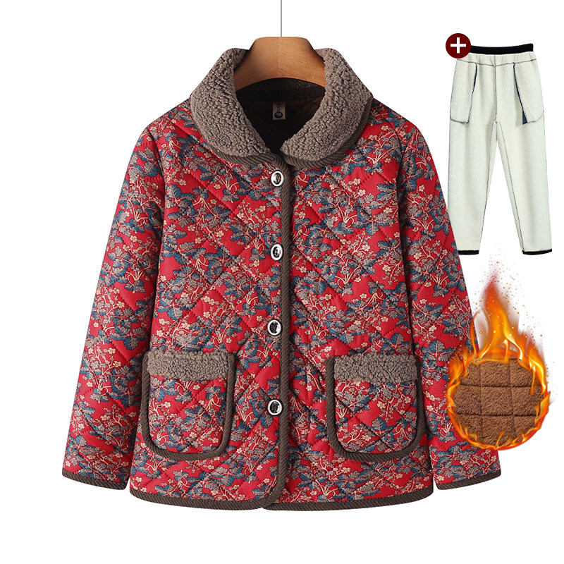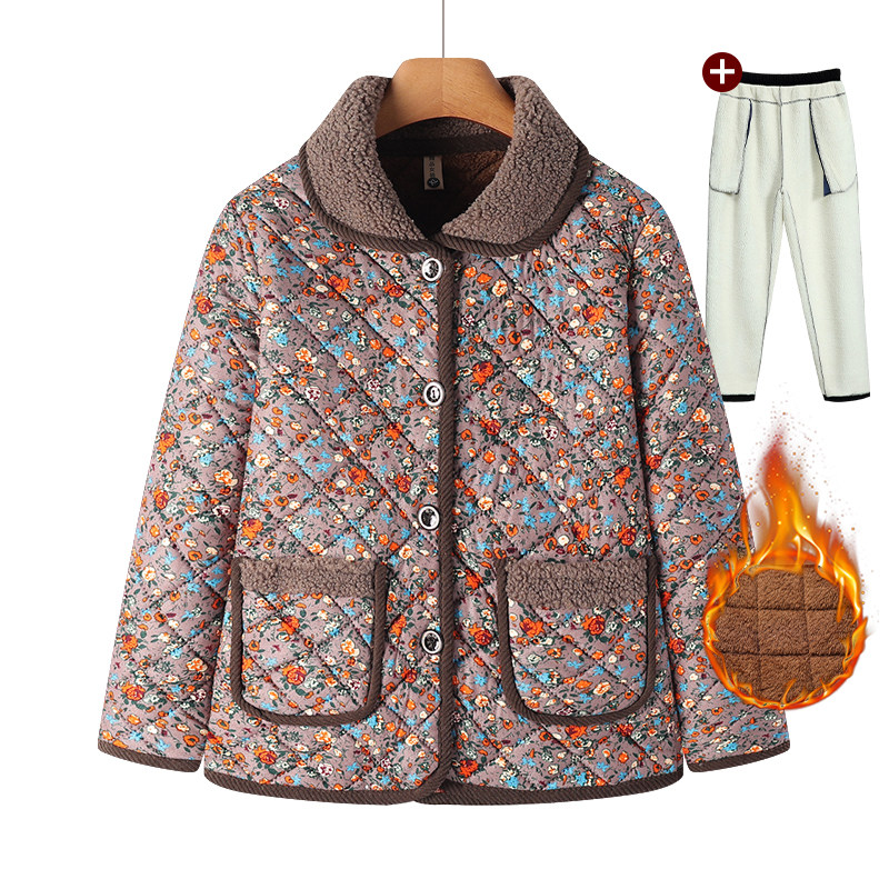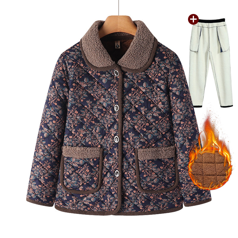 妈妈冬装碎花棉衣中老年人新款加绒贴片保暖棉服奶奶内外穿小棉袄