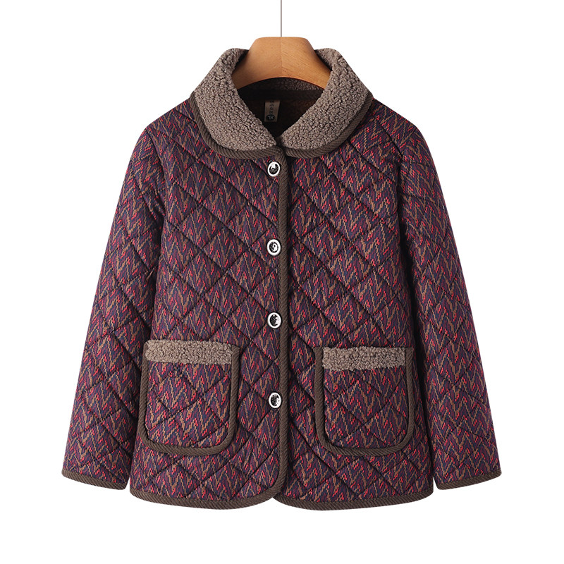 妈妈秋冬季加绒外套女中老年人大码宽松翻领棉衣三层加厚棉服上衣