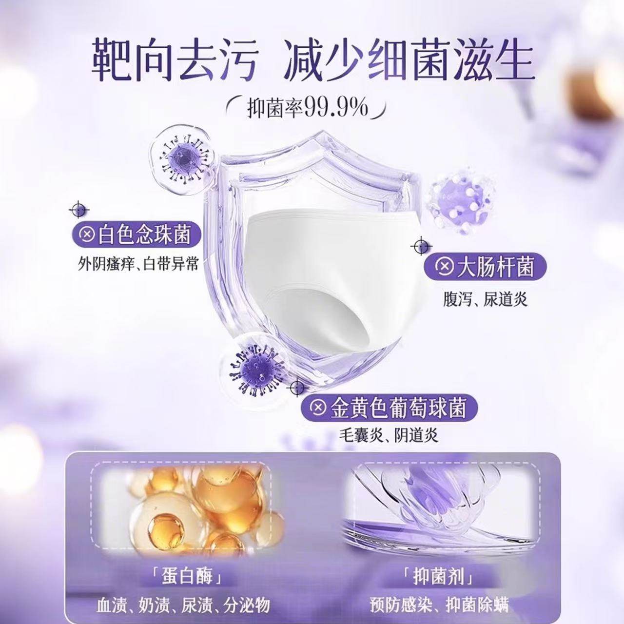 妇炎洁内裤清洗液女士除菌除螨清洗剂祛血渍黄官方专用内衣洗衣液