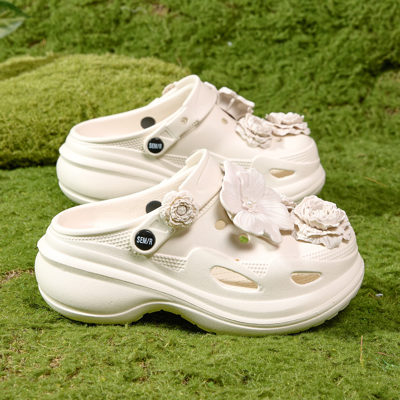 Semir女鞋花束洞洞鞋女2026春夏季新款厚底包头沙滩鞋外穿凉拖鞋