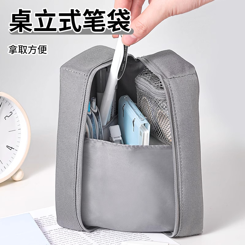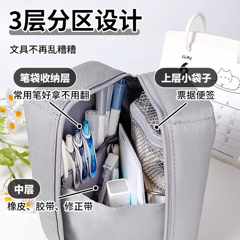 2025新品国誉Campus桌立式小冰箱开门笔袋高颜值学生便携收纳盒文具袋网格手提便携男孩女孩通用小学大容量