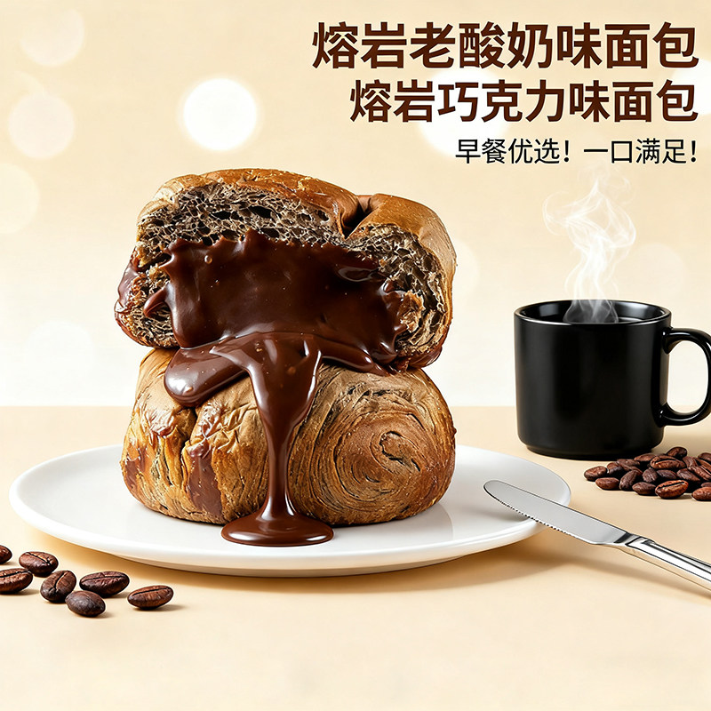 爆浆熔岩巧克力老酸奶夹心面包早餐欧包代餐饱腹解馋零食夜宵点心