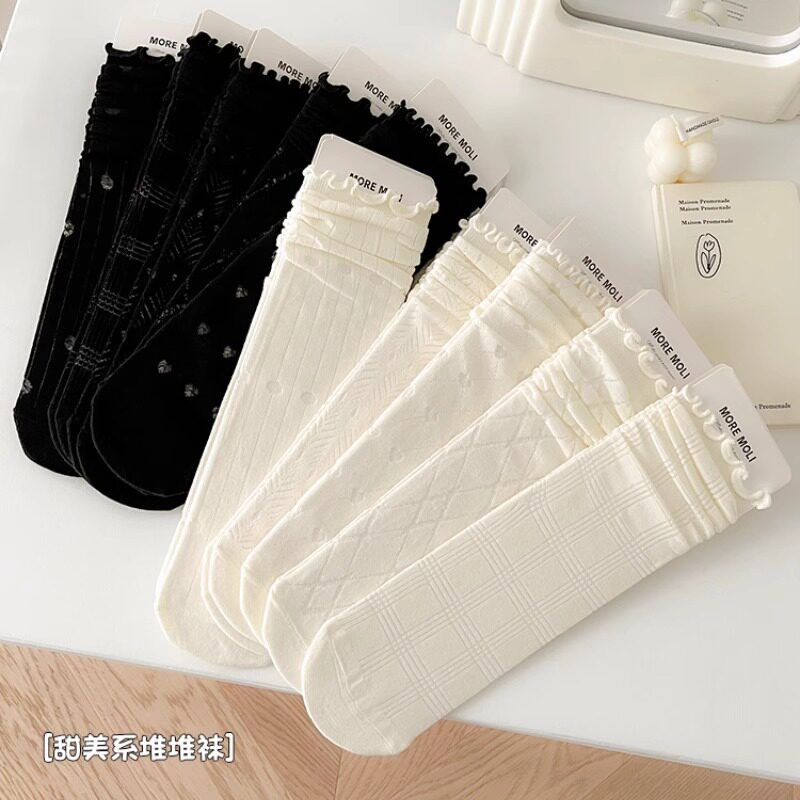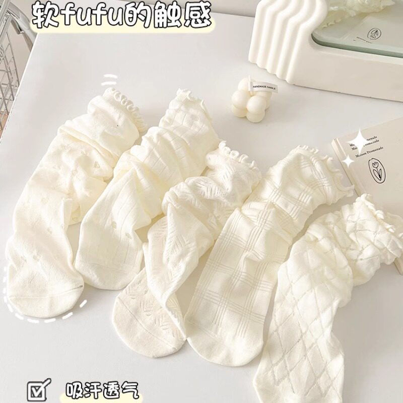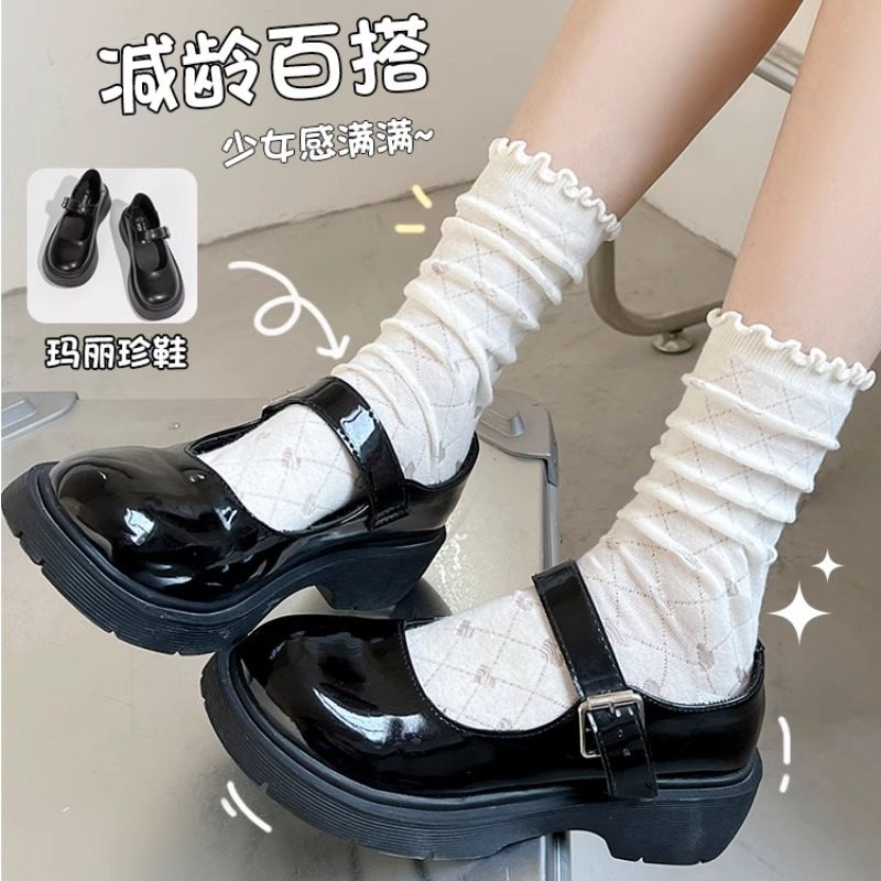 miu蝴蝶结蕾丝袜子女夏季中筒芭蕾风薄款白色花边堆堆袜配玛丽珍