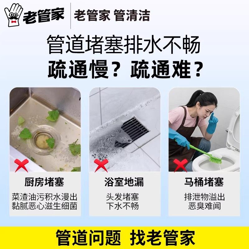 【厂长日专属价】老管家管道高速疏通剂泡泡粉强力溶解马桶堵塞