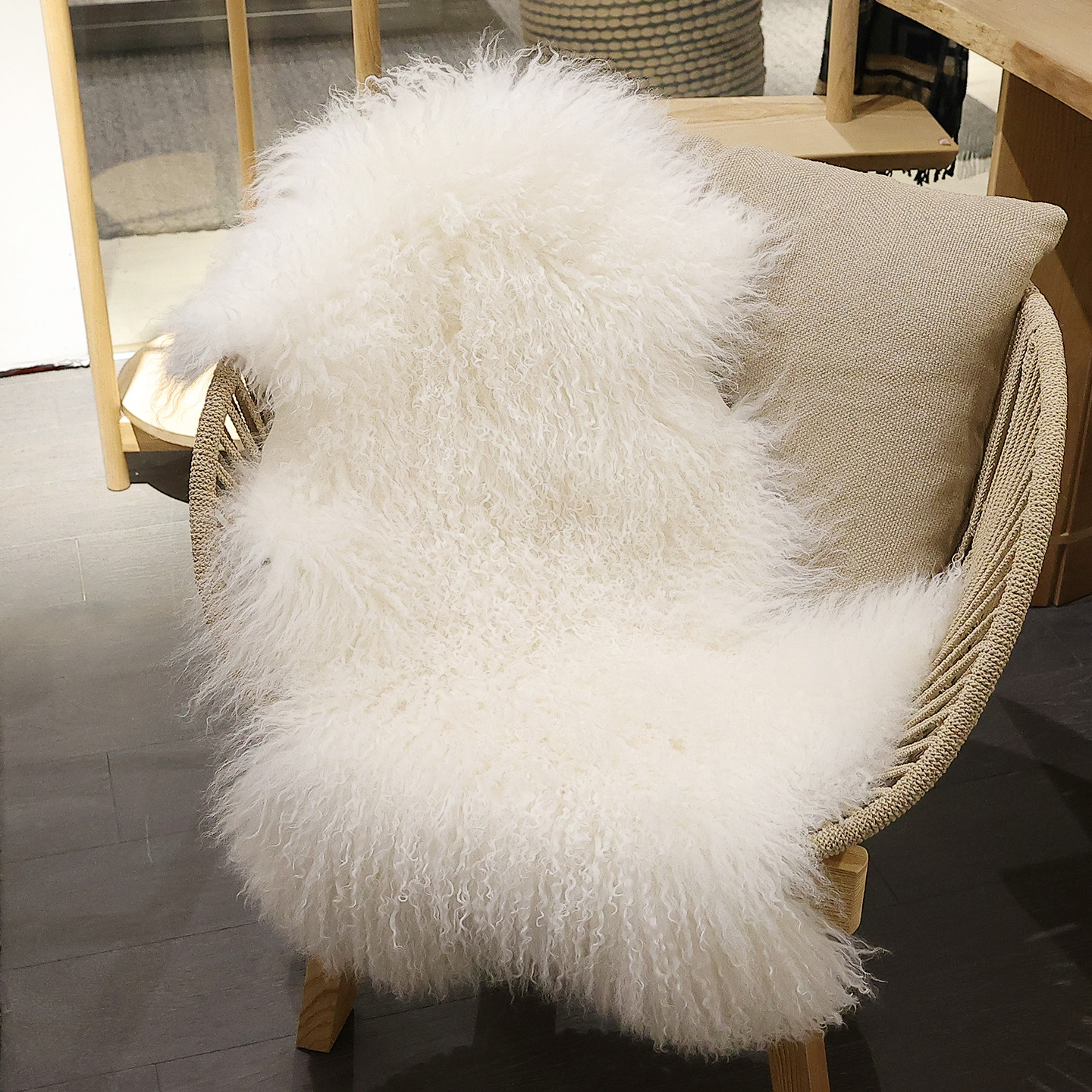 小沙白色宁夏滩羊毛沙发垫北欧风皮草毛绒保暖家居垫冬季毛毯地毯