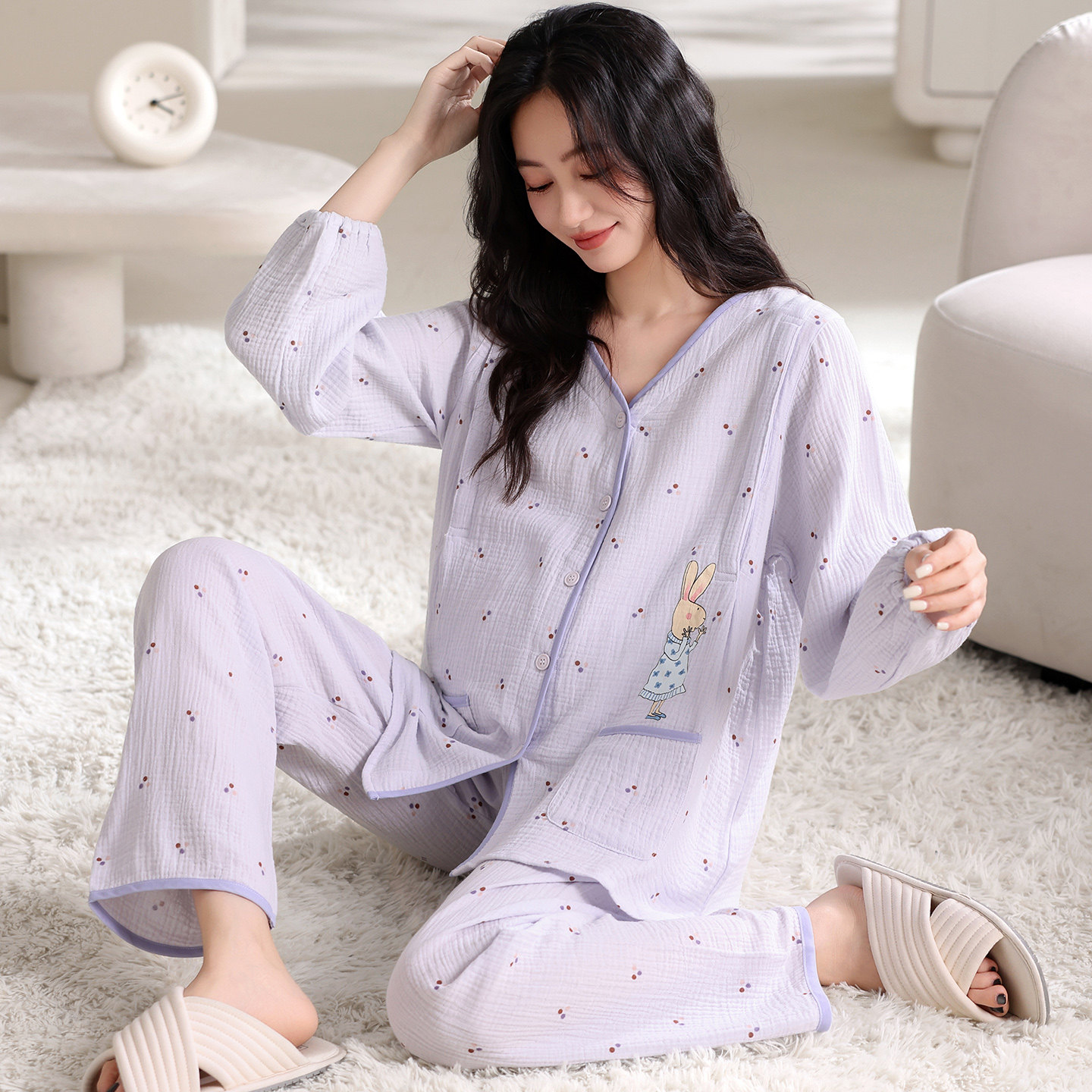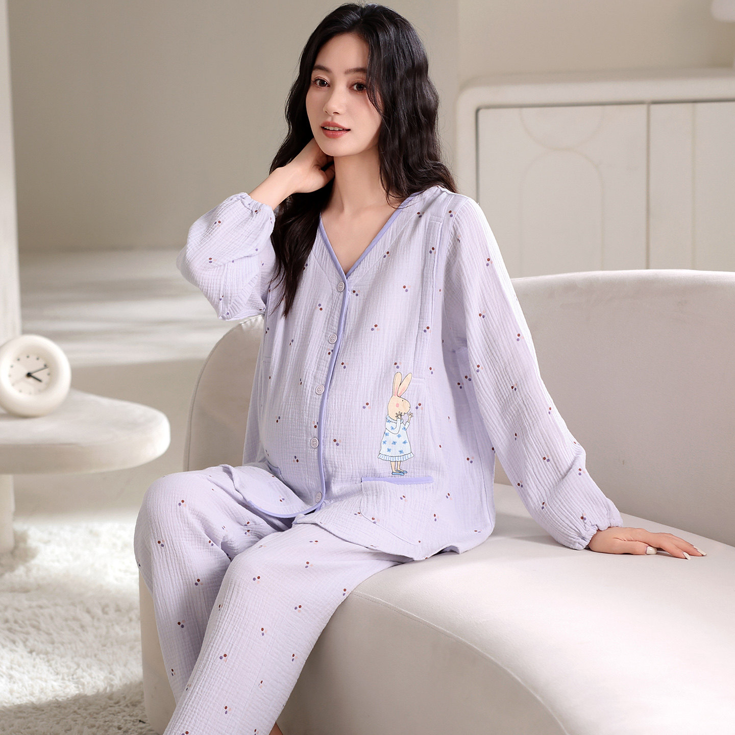 空气棉月子服秋冬纯棉产后夏季薄款全棉吸汗喂奶产妇哺乳孕妇睡衣