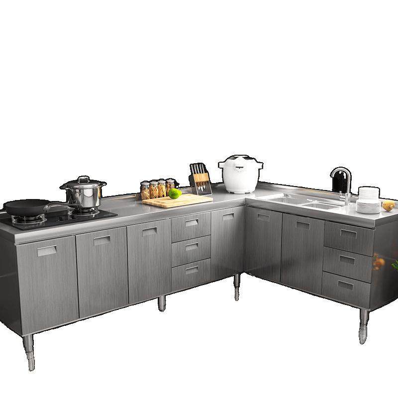 304整体全不锈白钢厨房橱柜简易灶台一体储物收纳碗柜家用小户型