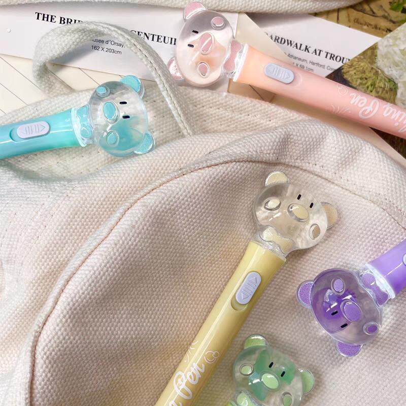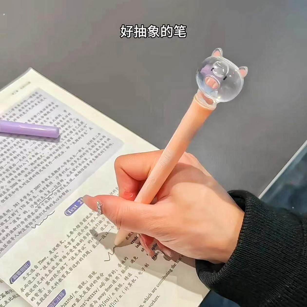 水母笔可爱高颜值小猪发光笔创意个性水母标本中性笔学生上学专用