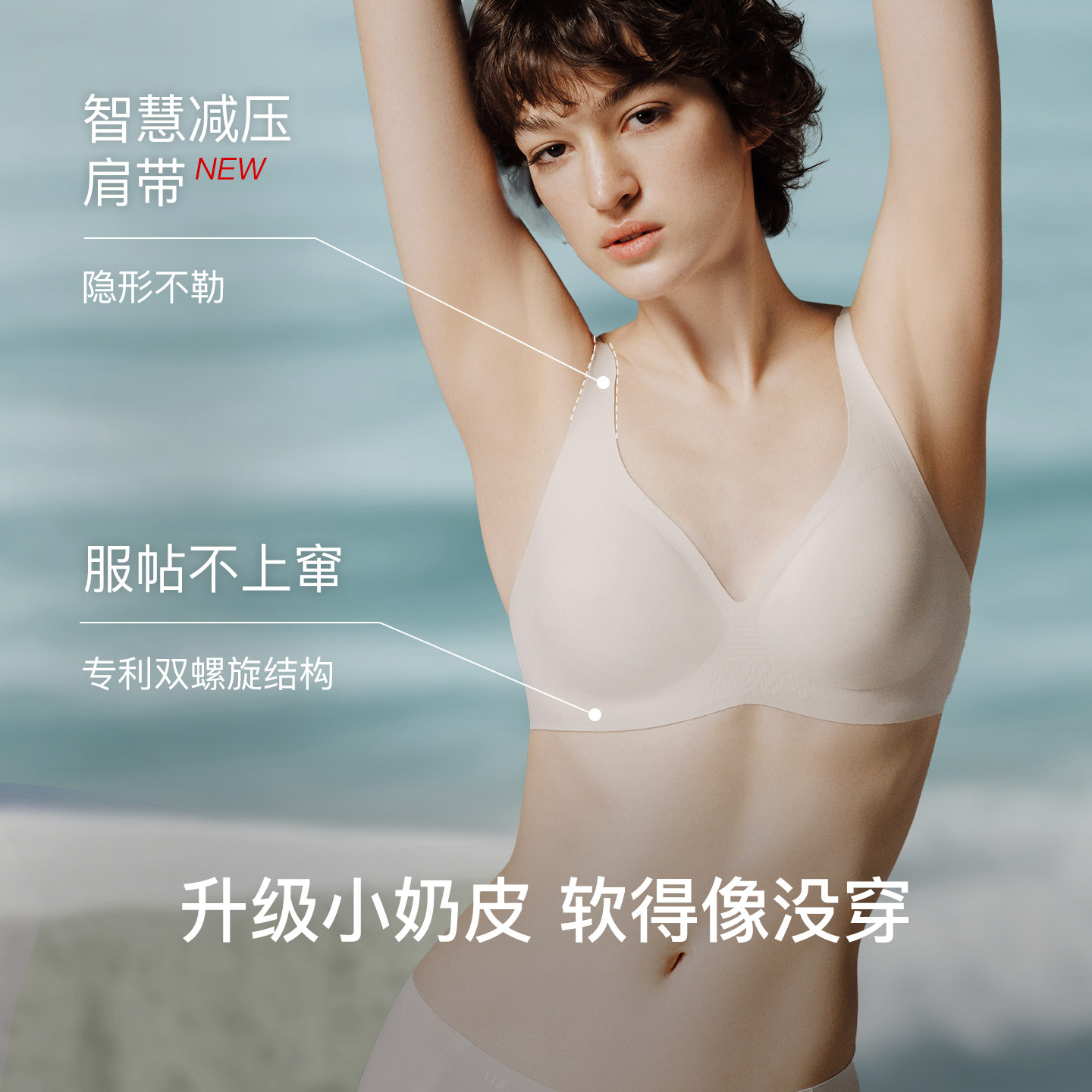 UFEEL【U提拉2代】内衣女无痕舒适小胸聚拢肩带美背文胸女8668