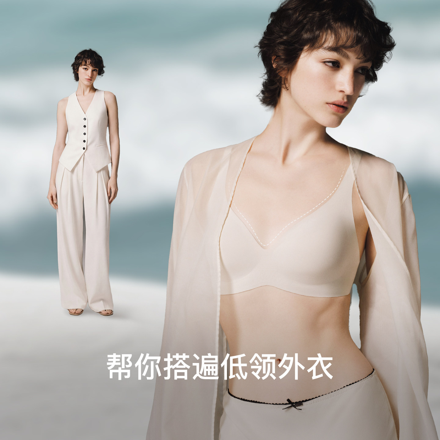 【新品试用】ubras无尺码梦露领小奶皮吊带背心文胸罩女