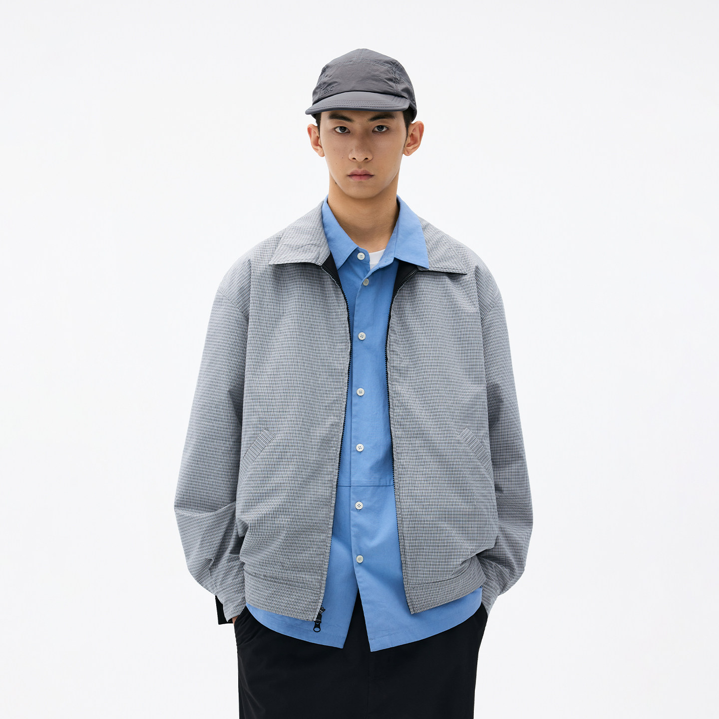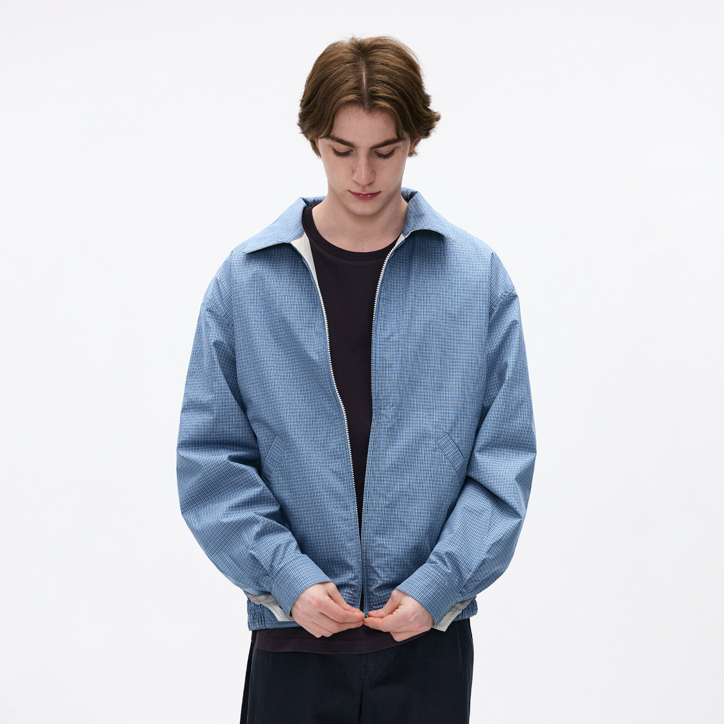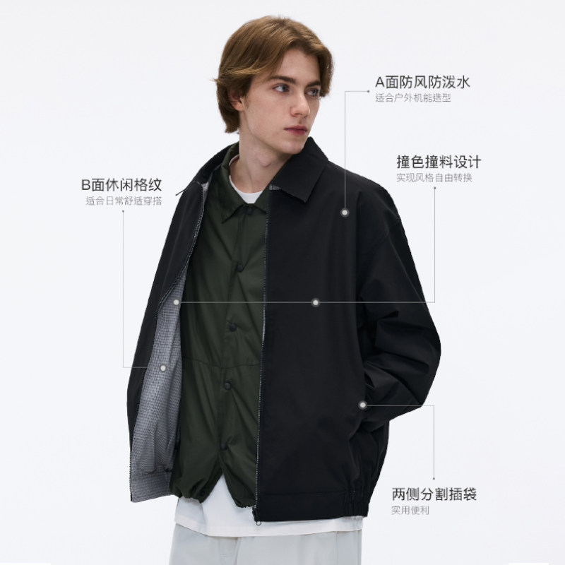 BENPANDA 撞色双面穿翻领防泼水夹克格纹宽松外套男款2026春季