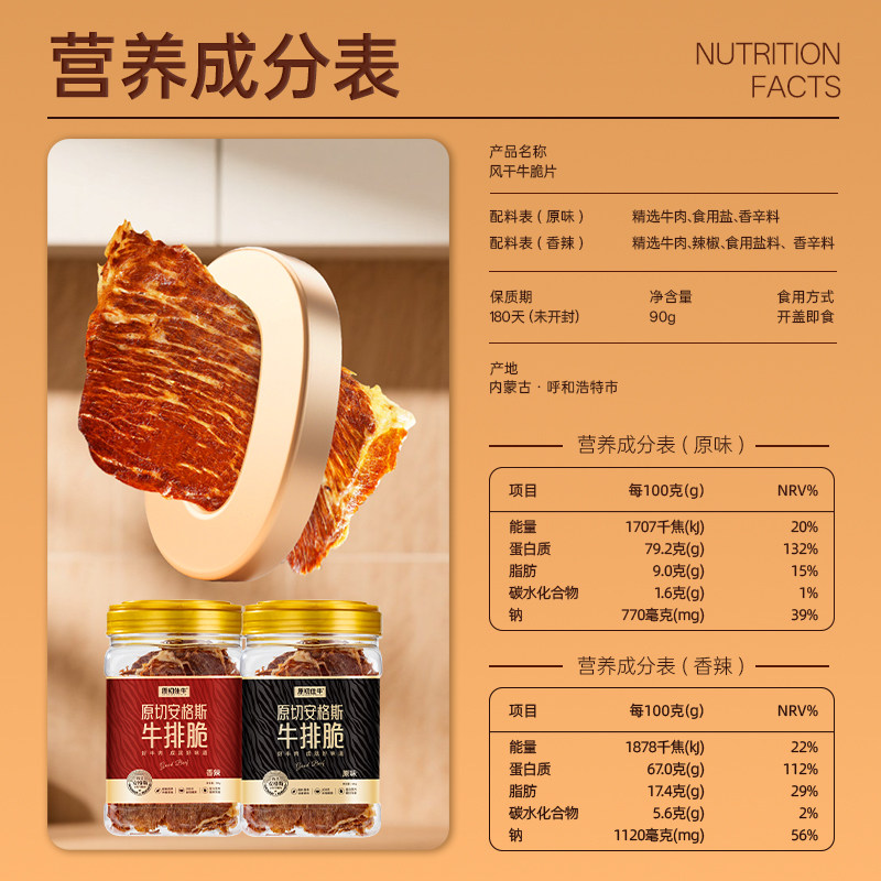 安格斯牛脆脆牛排脆高蛋白牛肉脆片内蒙特产超薄牛肉即食解馋零食