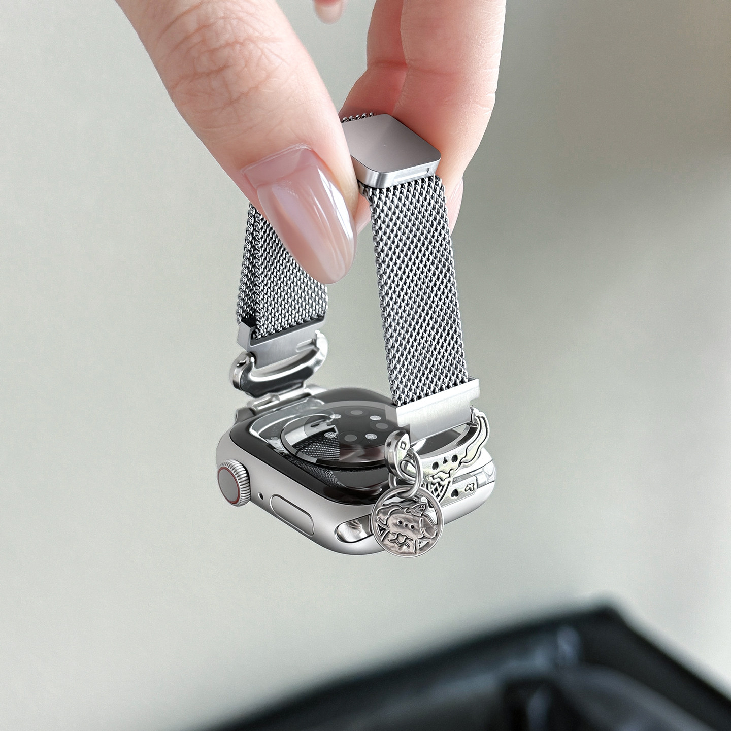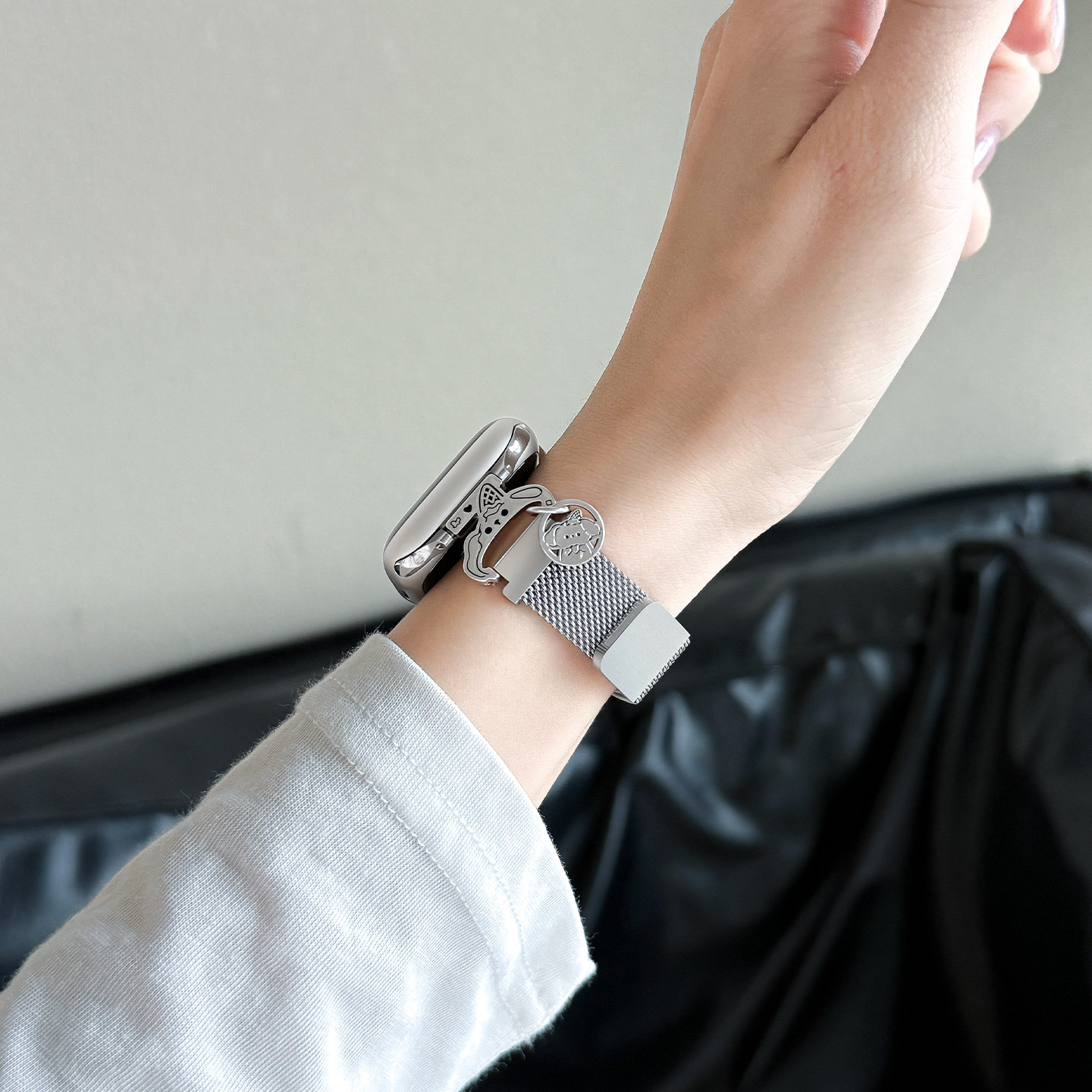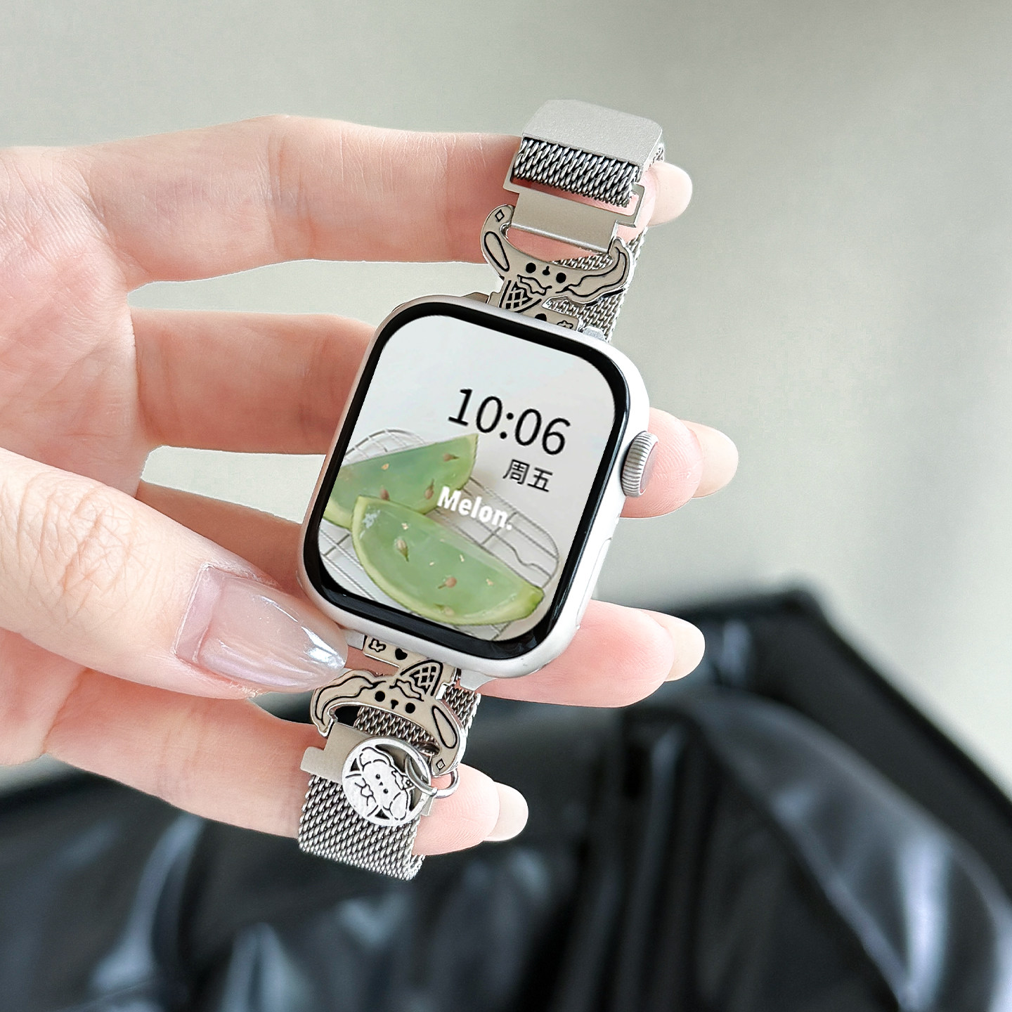 雪糕狗适用华为fit4手表带新款FIT4pro米兰尼斯3细款磁吸透气2小米手环9Pro腕带苹果手表s11运动s10卡通银色