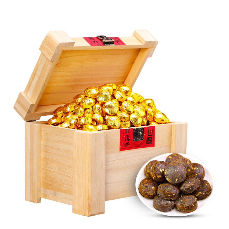 宫明茶叶 云南普洱茶熟茶糯米香小金砖普洱熟茶小圆饼320克礼盒装