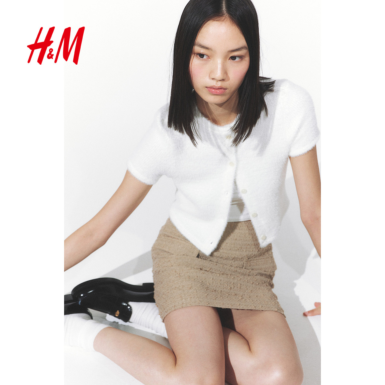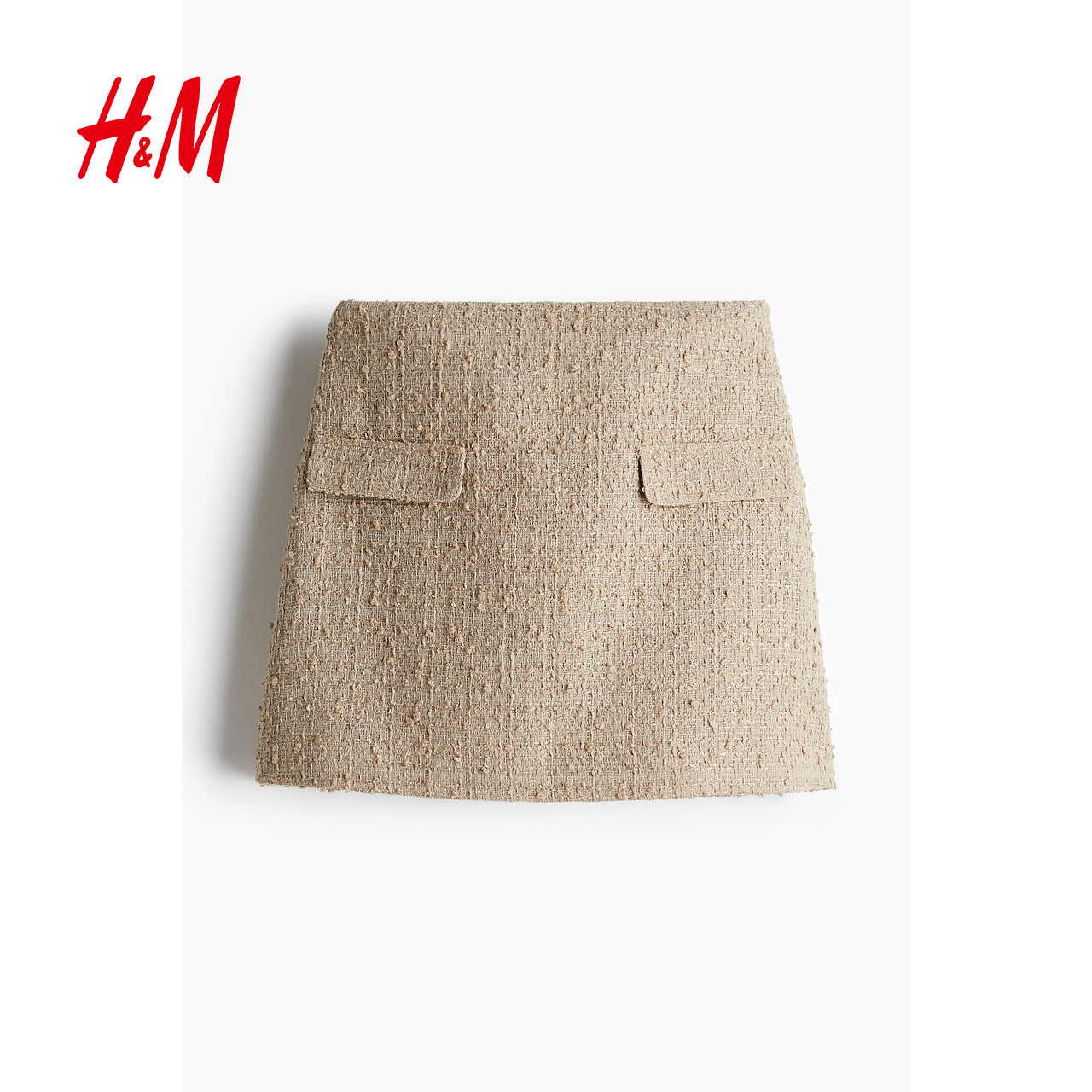 HM女装半身裙春季年春季小香风梭织A字型半身短裙1271132