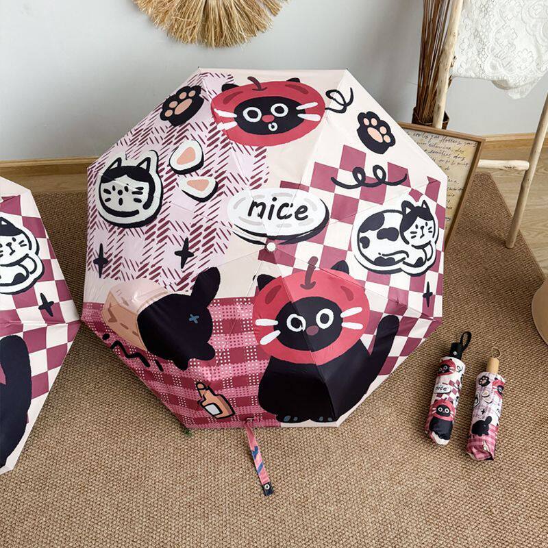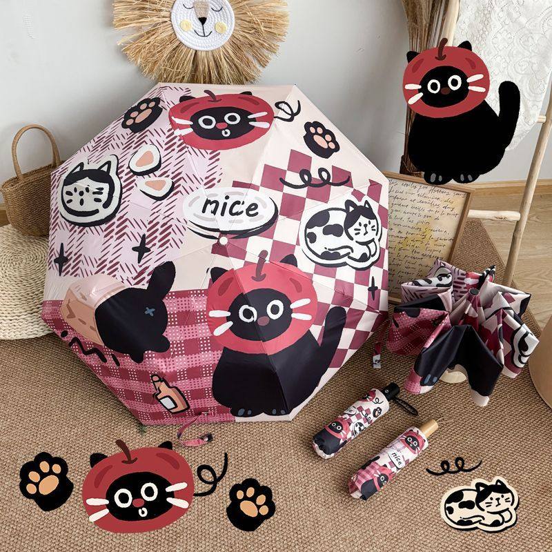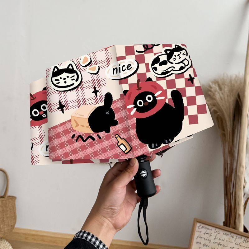 卡通复古黑猫晴雨两用伞便携可爱遮阳防晒全自动黑胶雨伞学生折叠