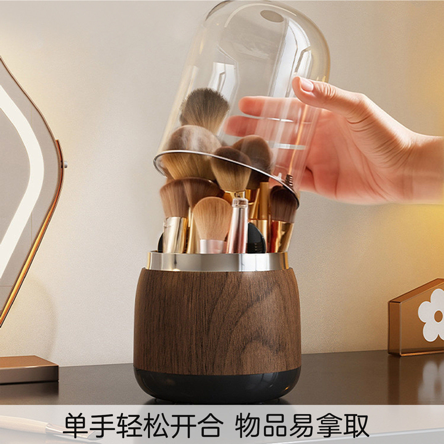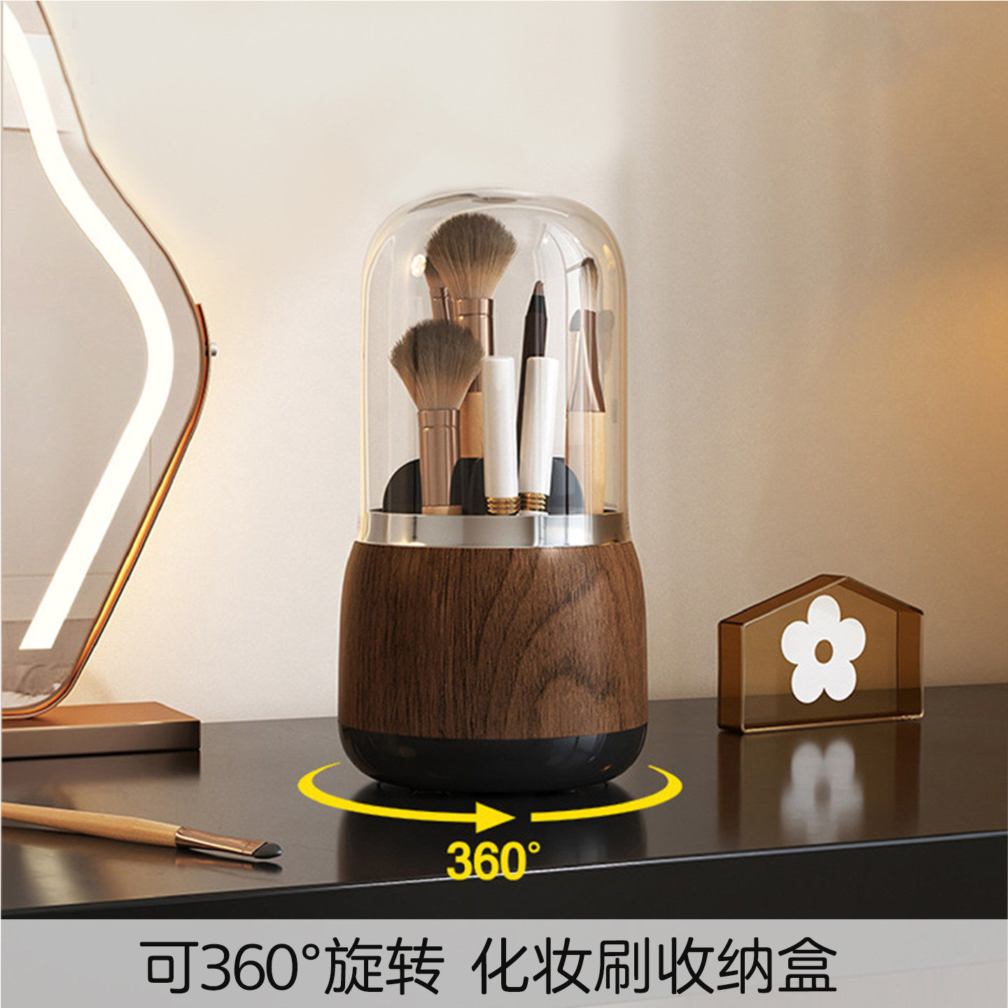 旋转化妆刷收纳盒桌面带盖大容量防尘收纳口红眼影眉笔升降垃圾桶