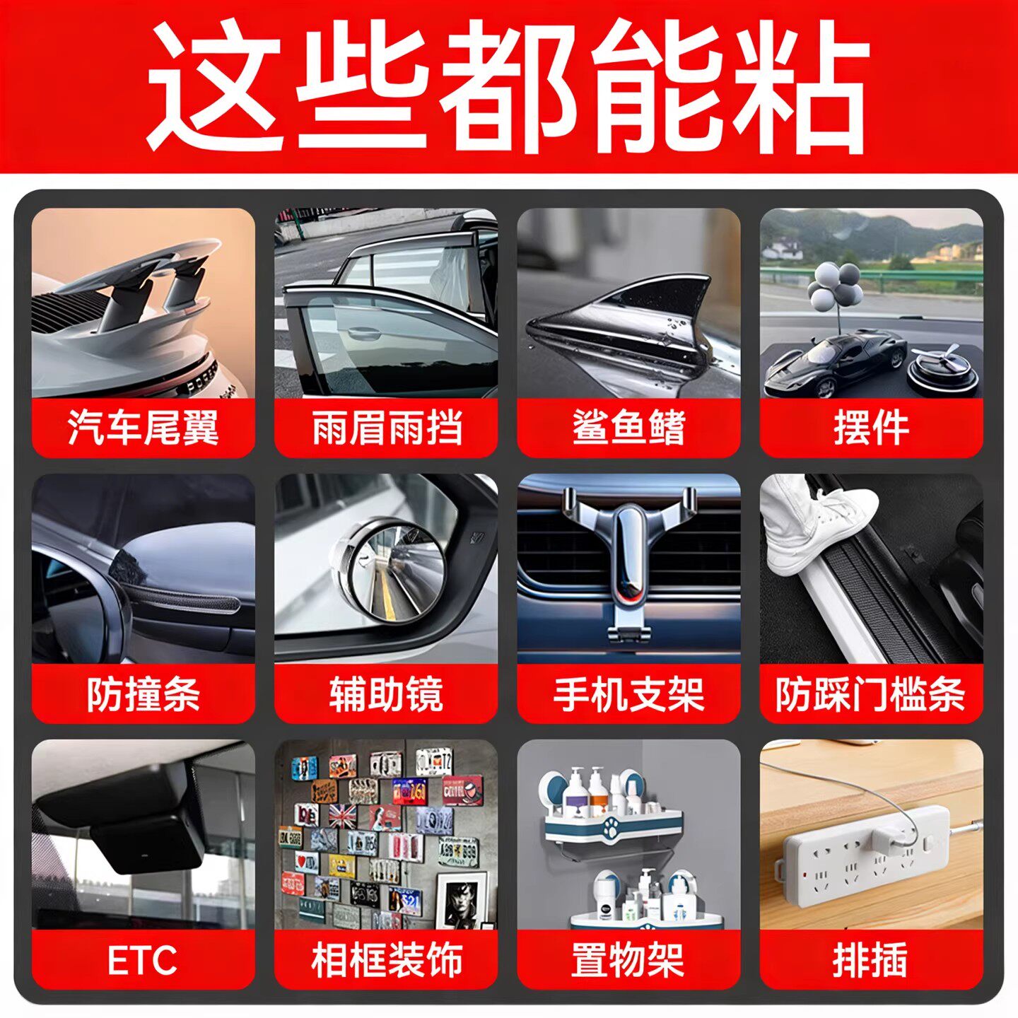 工业级强度 耐高温无痕不留胶 汽车家居通用