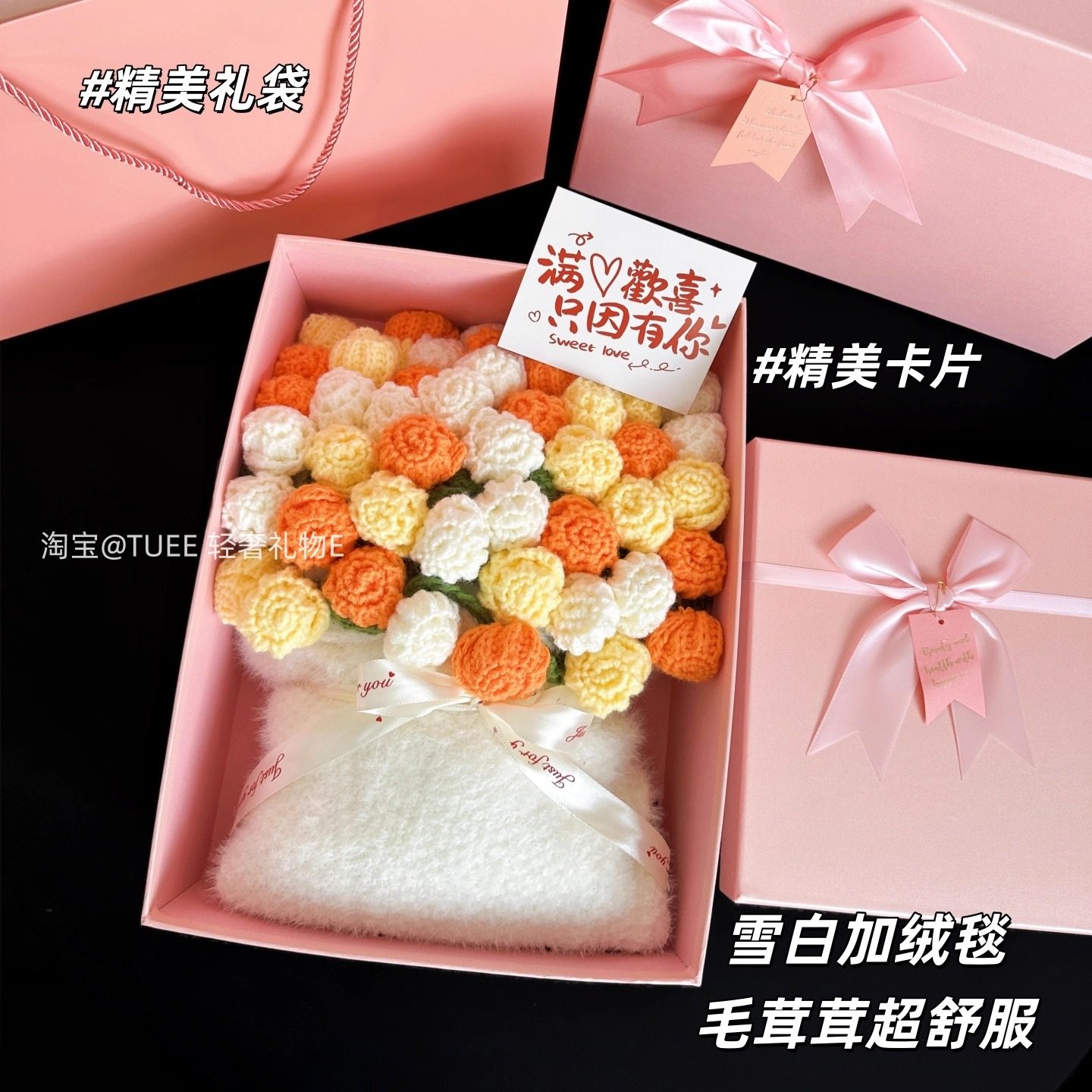 成品向日葵玫瑰花束毛毯子手工编织生日礼物女生送闺蜜跨新年元旦