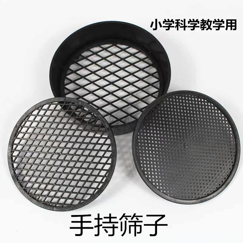 81204小学科学用手持筛子3种筛网状粗细密塑料制小学教学实验过滤