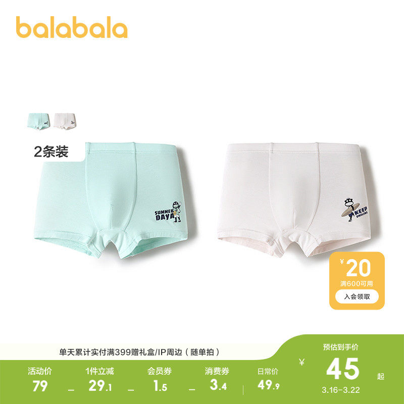 【balaOne】巴拉巴拉儿童内裤棉男童不夹pp抗菌裆四角短裤三条装