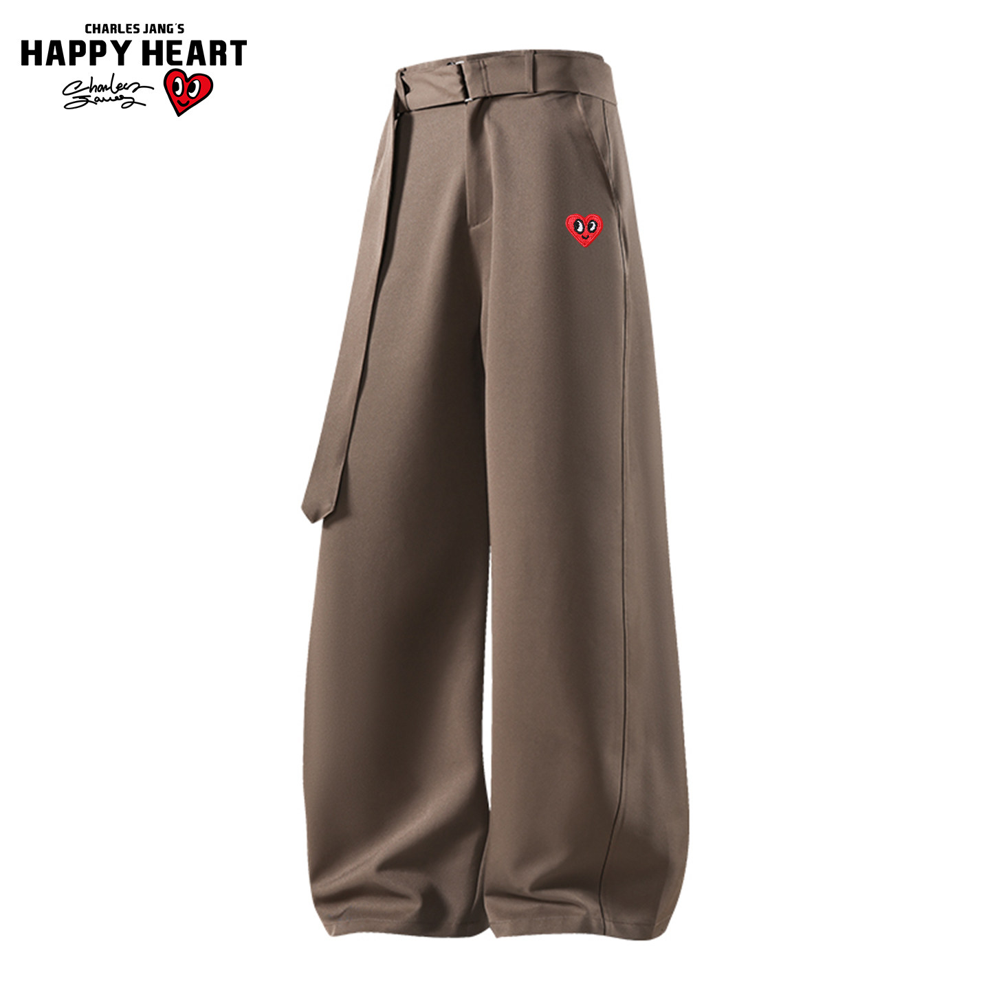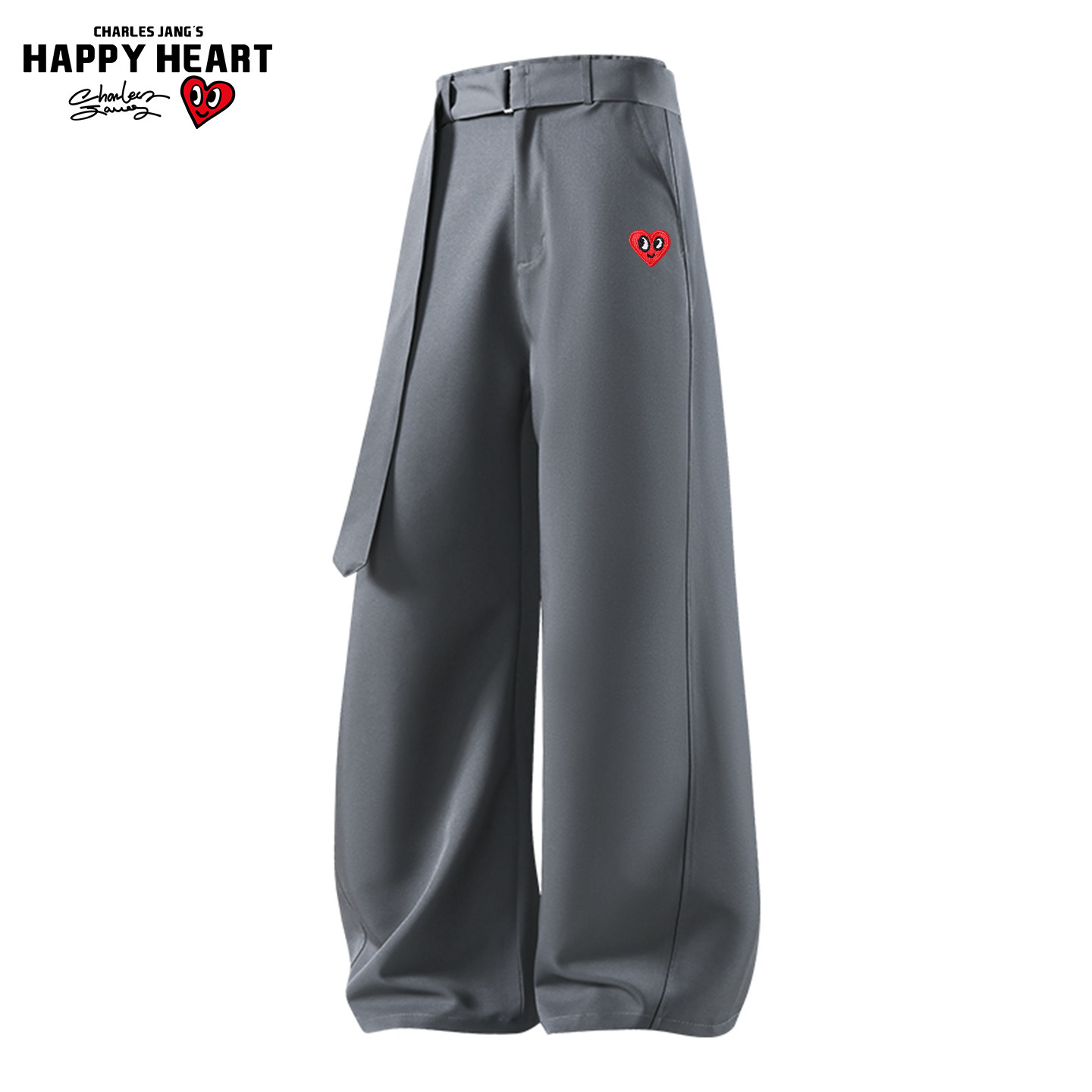 查尔斯桃心 黑色休闲垂感阔腿西裤男女春秋冬季加绒腰带西装长裤