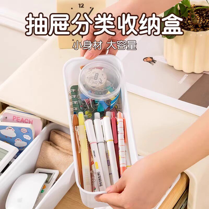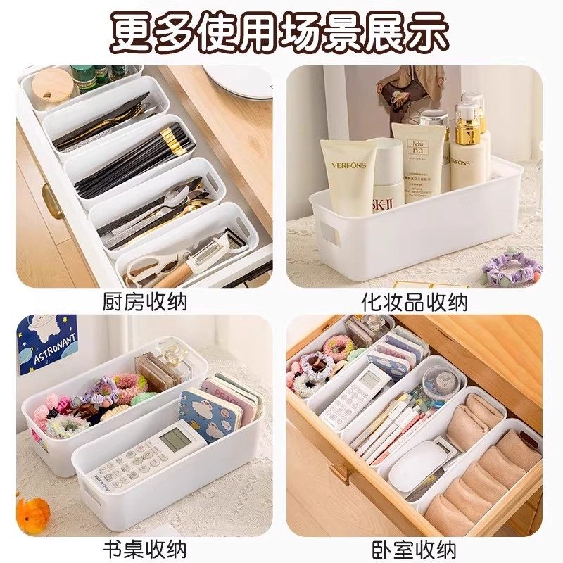 桌面宿舍收纳盒长条窄长型长方形亚克力透明杂物小物件抽屉分隔盒