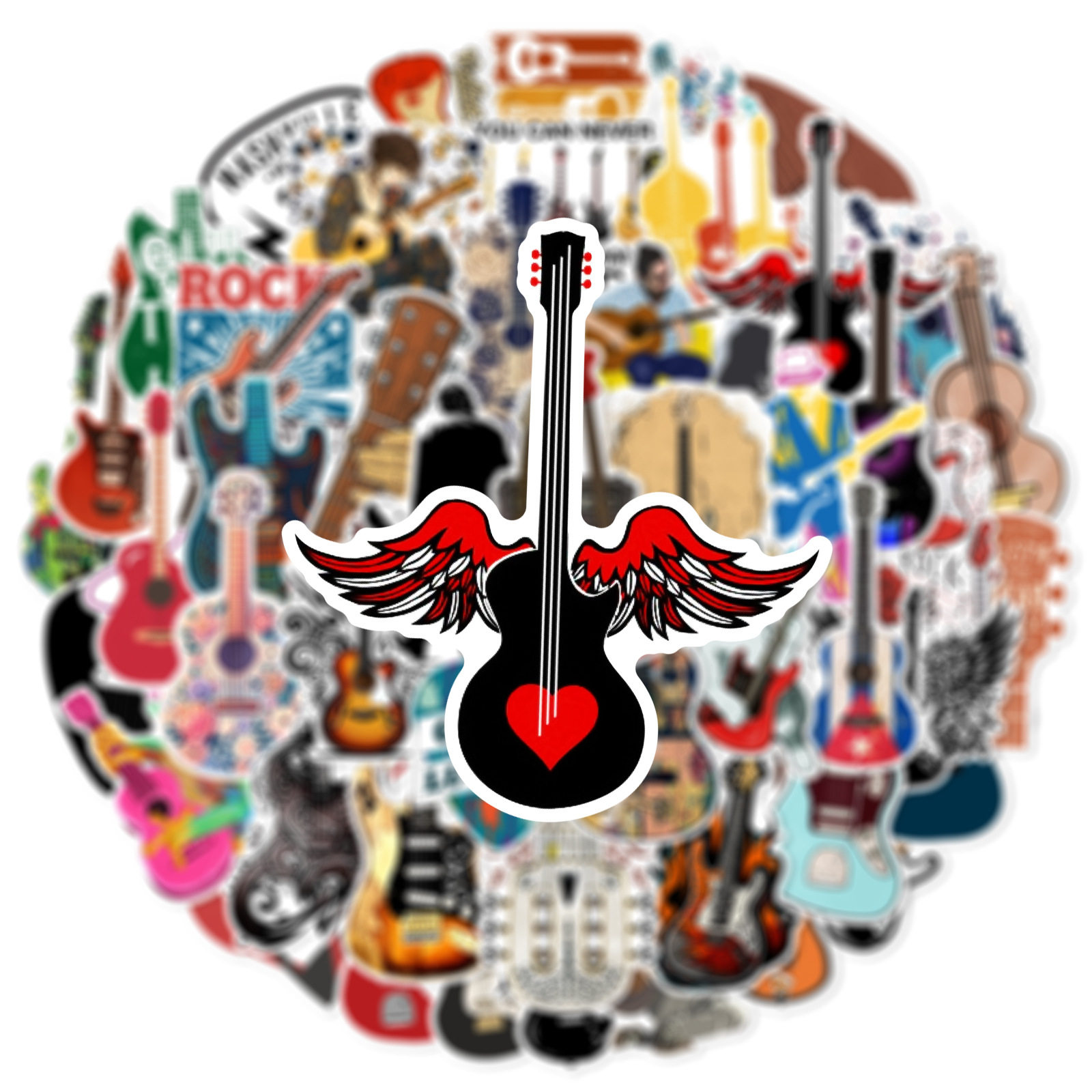 700张潮玩个性吉他乐器摇滚音乐涂鸦贴纸防水可移笔记本电脑平板吉他水杯手机后壳摩托车机车装饰贴画防水diy