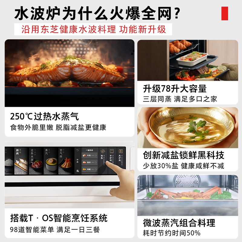 东芝大白茶T700A微蒸烤一体机嵌入式家用微波炉蒸烤箱炸炖水波炉